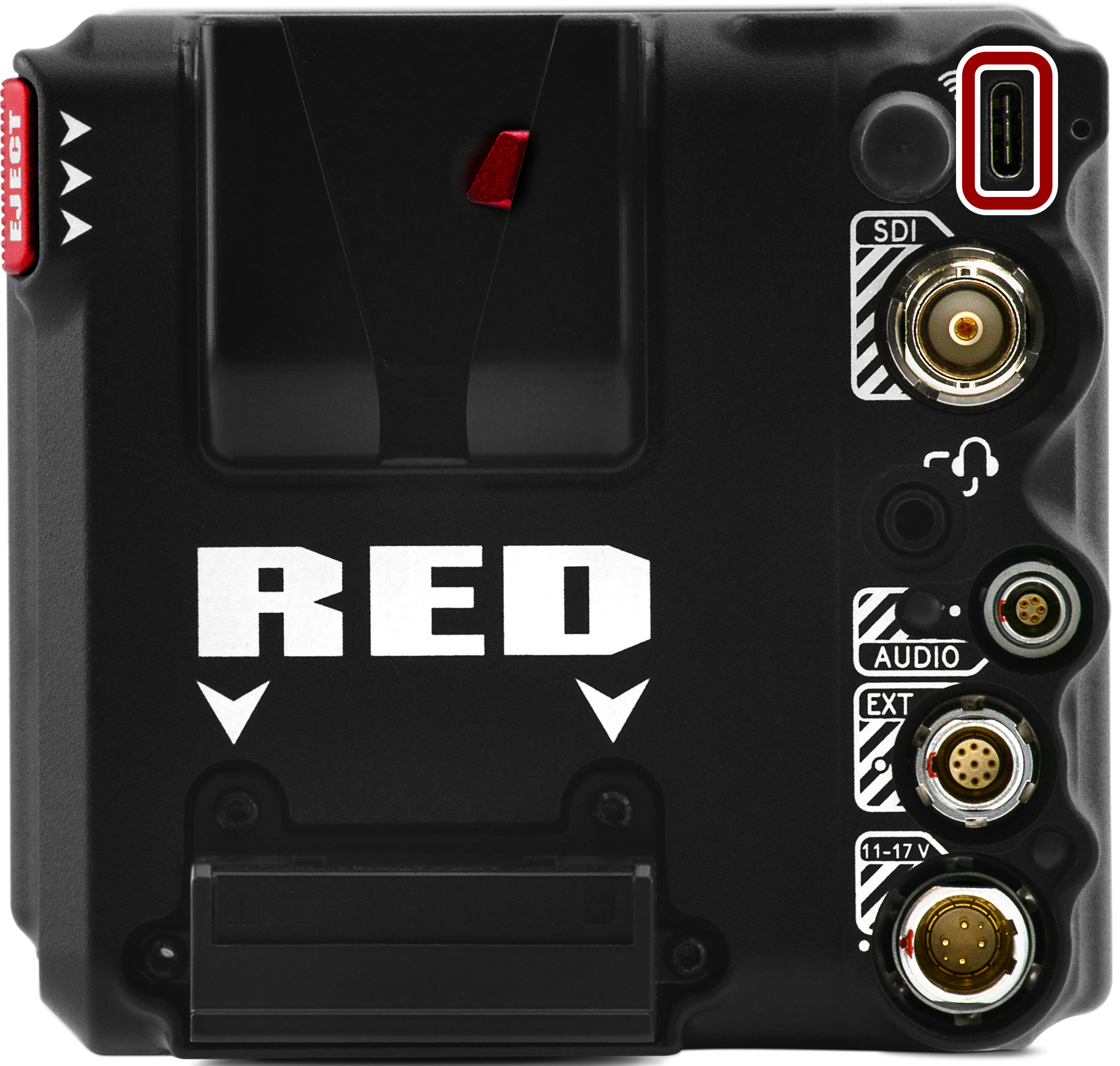 KOMODO-X offers a USB-C 3.0 protocol connection that provides communication support for Android devices, Apple devices, Ethernet devices, and R3D streaming with the RED Connect License (with 5 Gb/s Ethernet adapter).