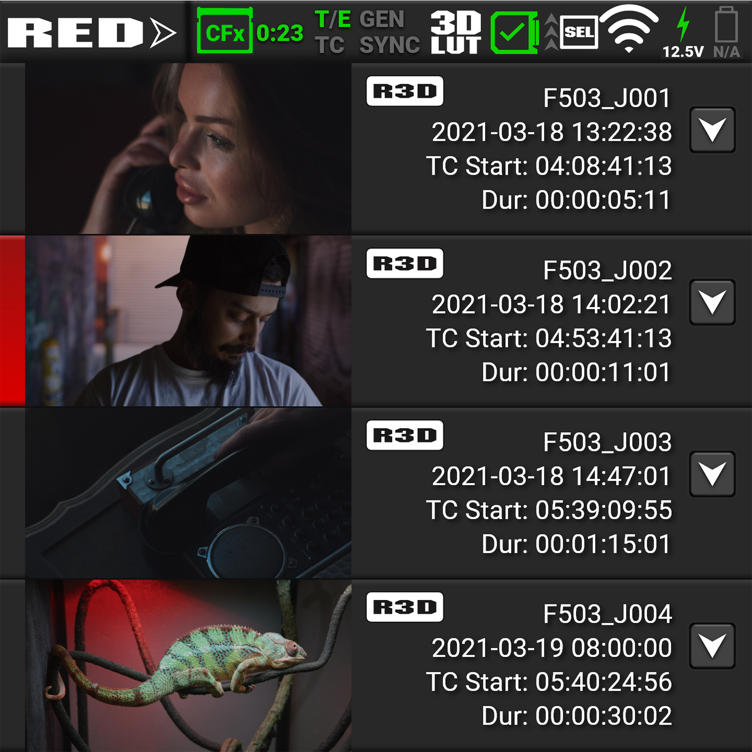 Swipe up and down to scroll through the list of clips. Tap the down arrow to open the clip information page.