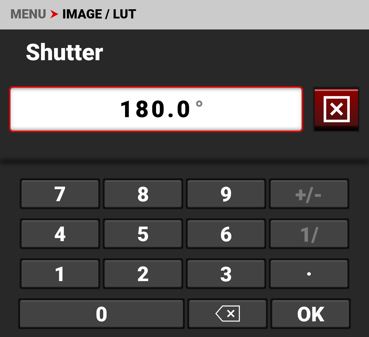 Use Shutter to select the exposure time (shutter speed / shutter angle). The camera allows you to change the shutter settings while recording.