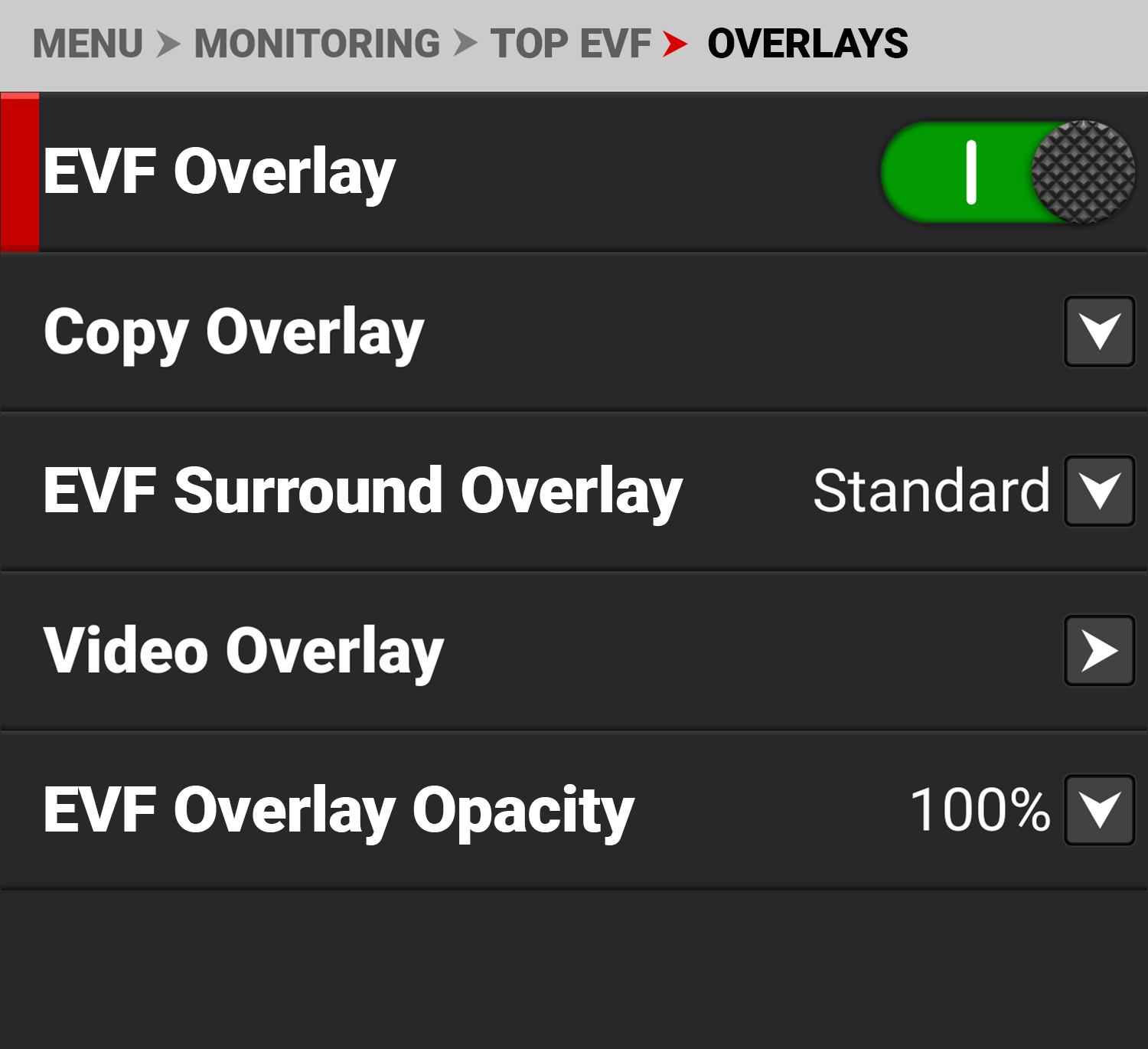 Enable or disable the EVF overlay display |