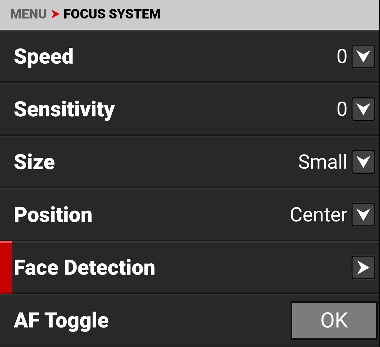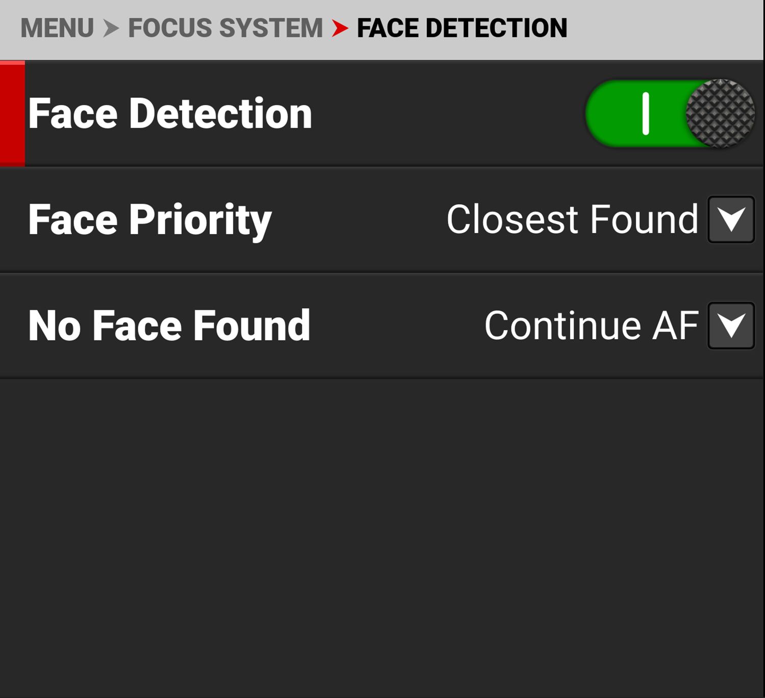Use the Face Detection toggle to enable or disable Face Detection.