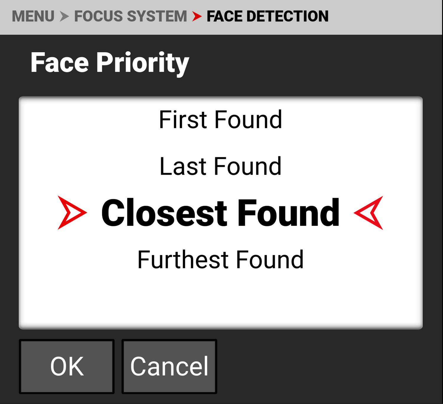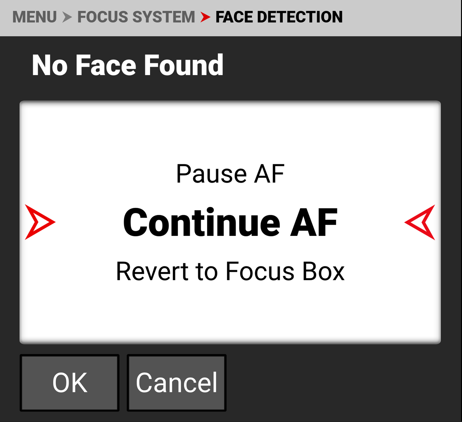 Use No Face Found to select how you want Autofocus to respond when no faces are detected in the frame.