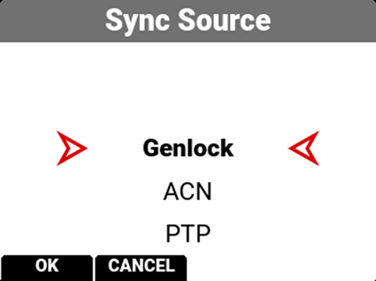 Use Sync Source to select the sensor sync source from Genlock, ACN, or PTP.