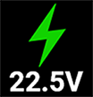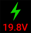 This icon indicates the state of the battery connection and charge level. When the voltage is low, it displays the voltage in red.