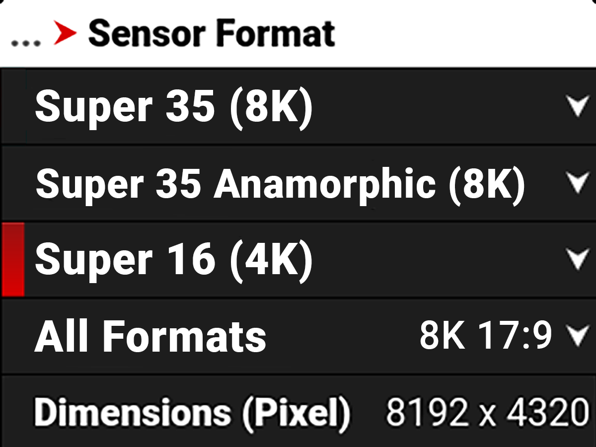This table contains the dimensions of the sensor area in pixels and in millimeters used by each Super 16 (4K) sensor format. These dimensions are close approximations.