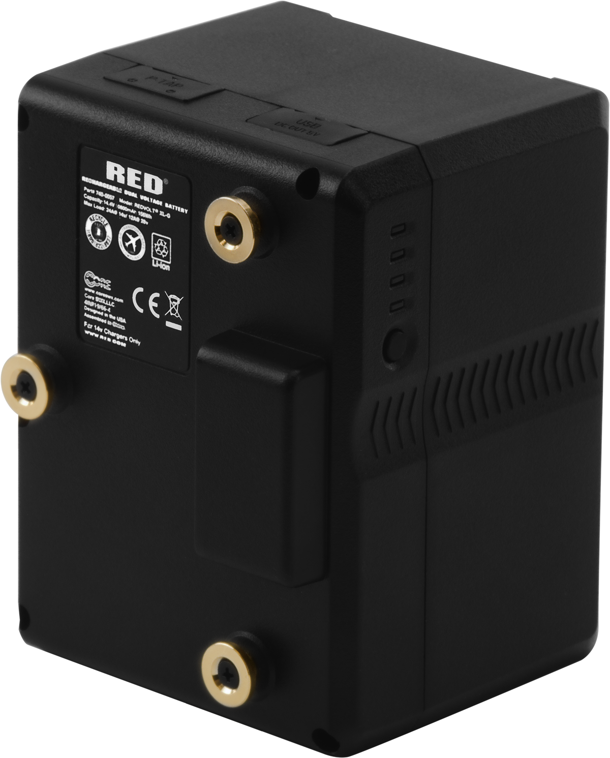 The REDVOLT® batteries may be compatible with DSMC®, DSMC2®, RED RANGER® and KOMODO® camera systems with compatible V-Lock or Gold Mount modules or adapters.