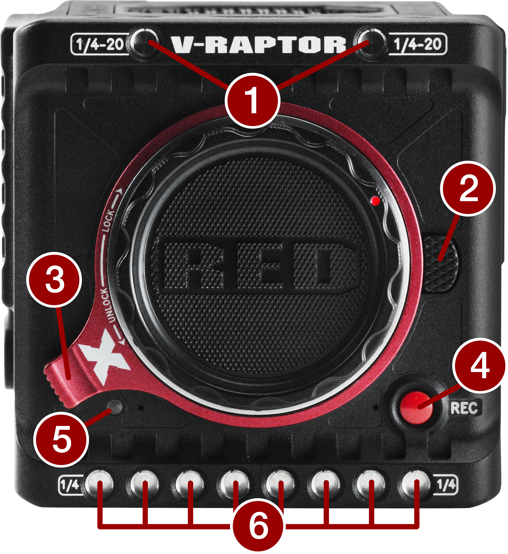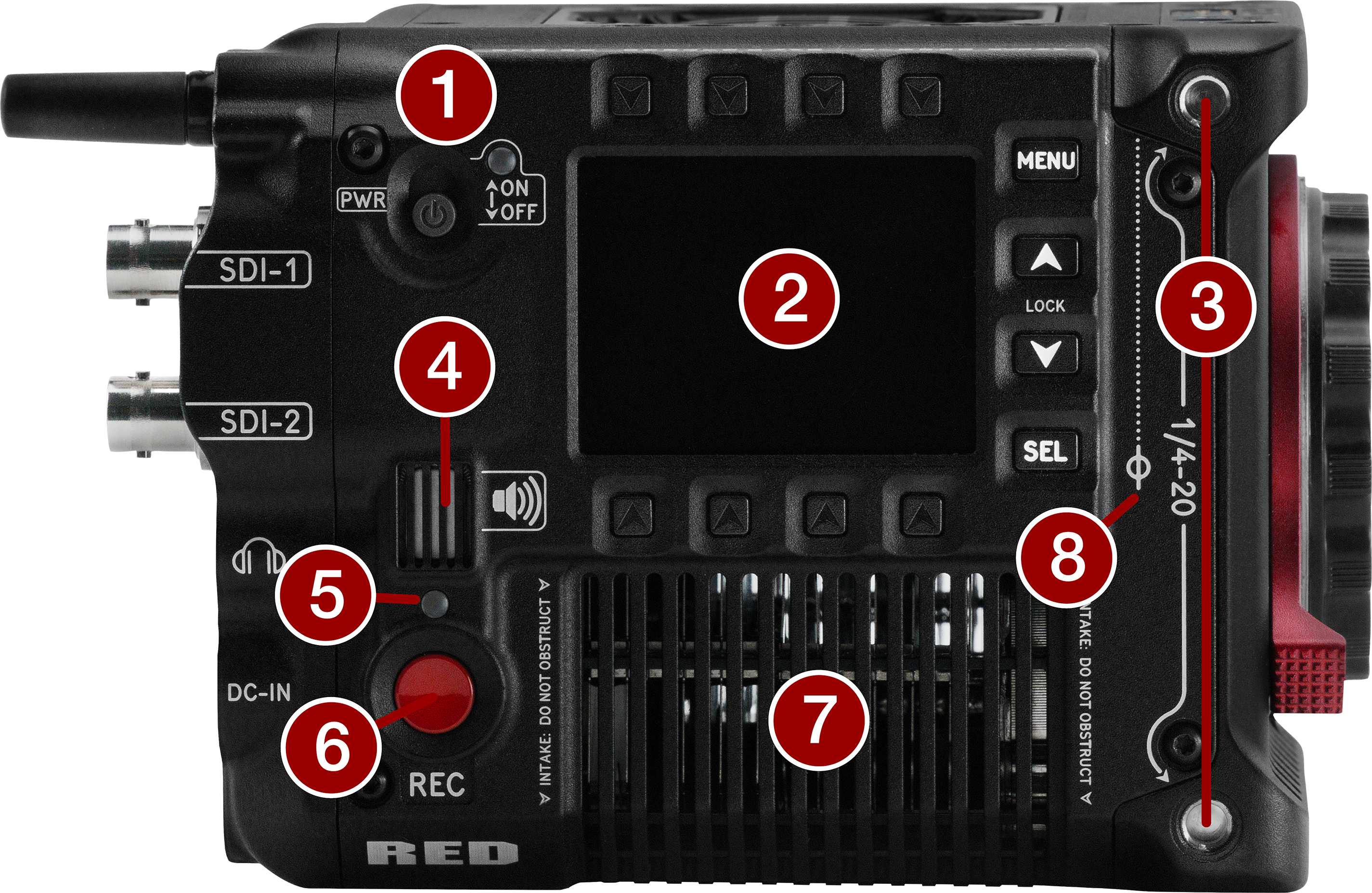 Connection port for accessories (refer to Outrigger Handle, and DSMC3™ RED® Touch 7.0" LCD) |