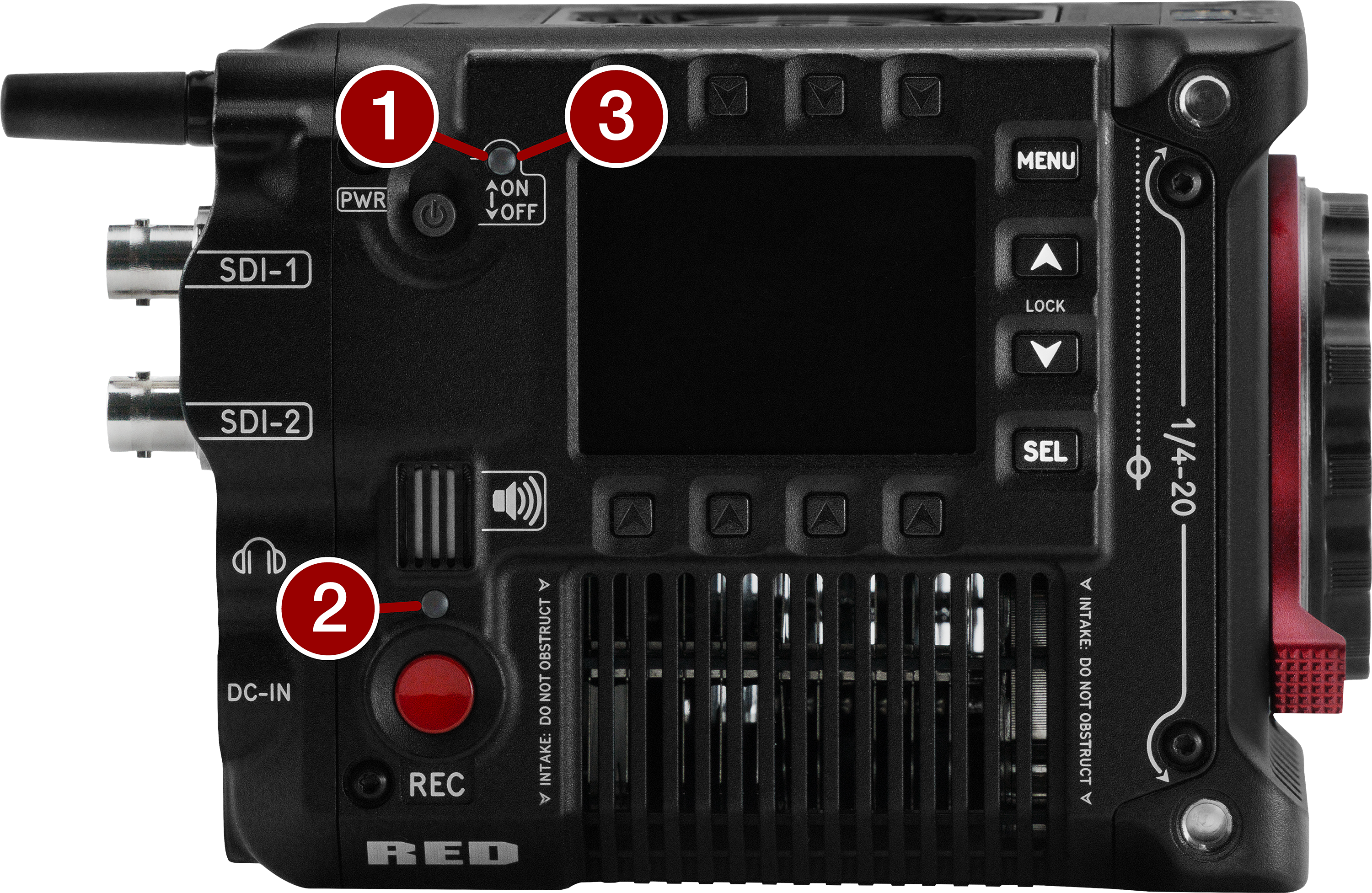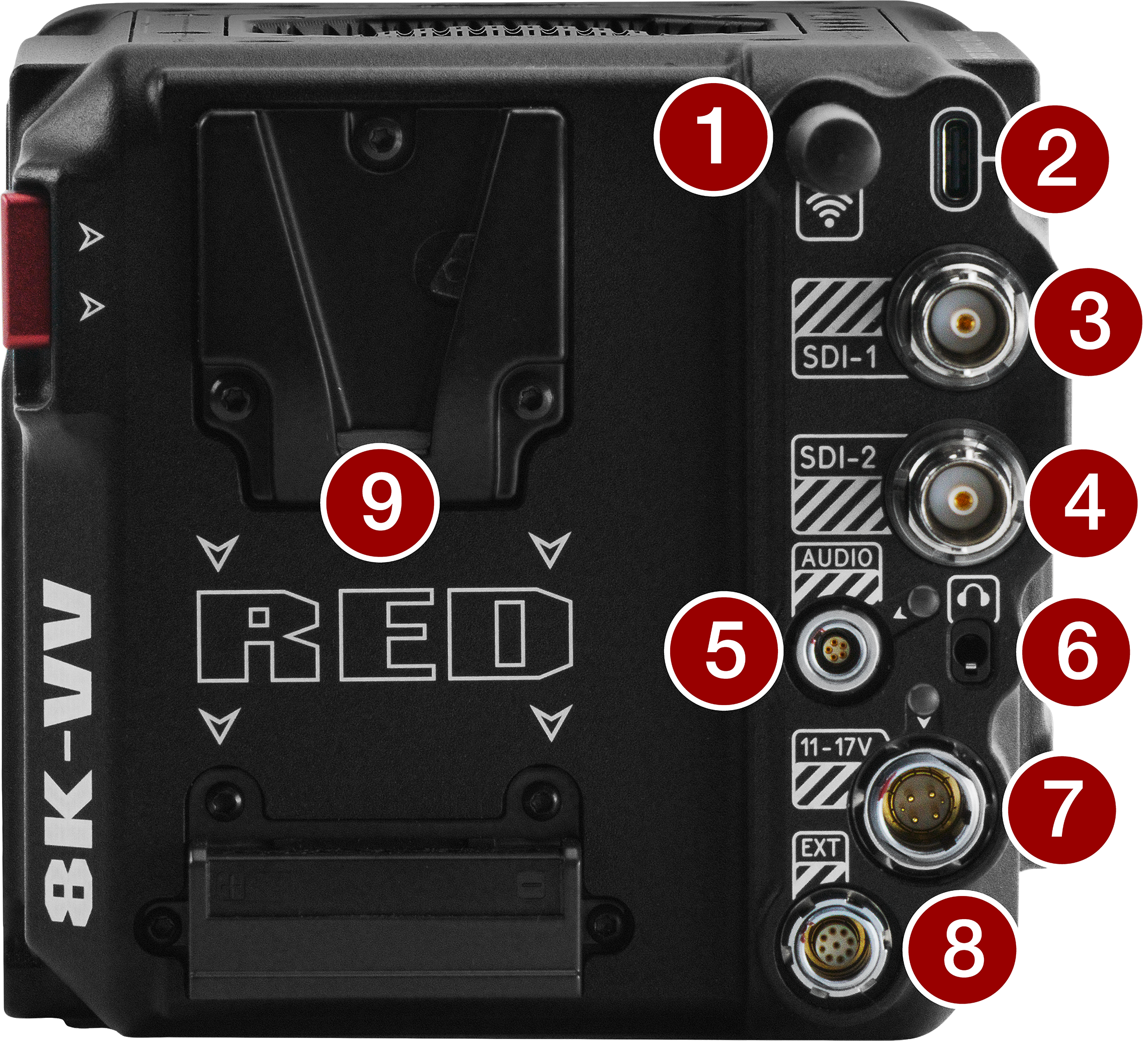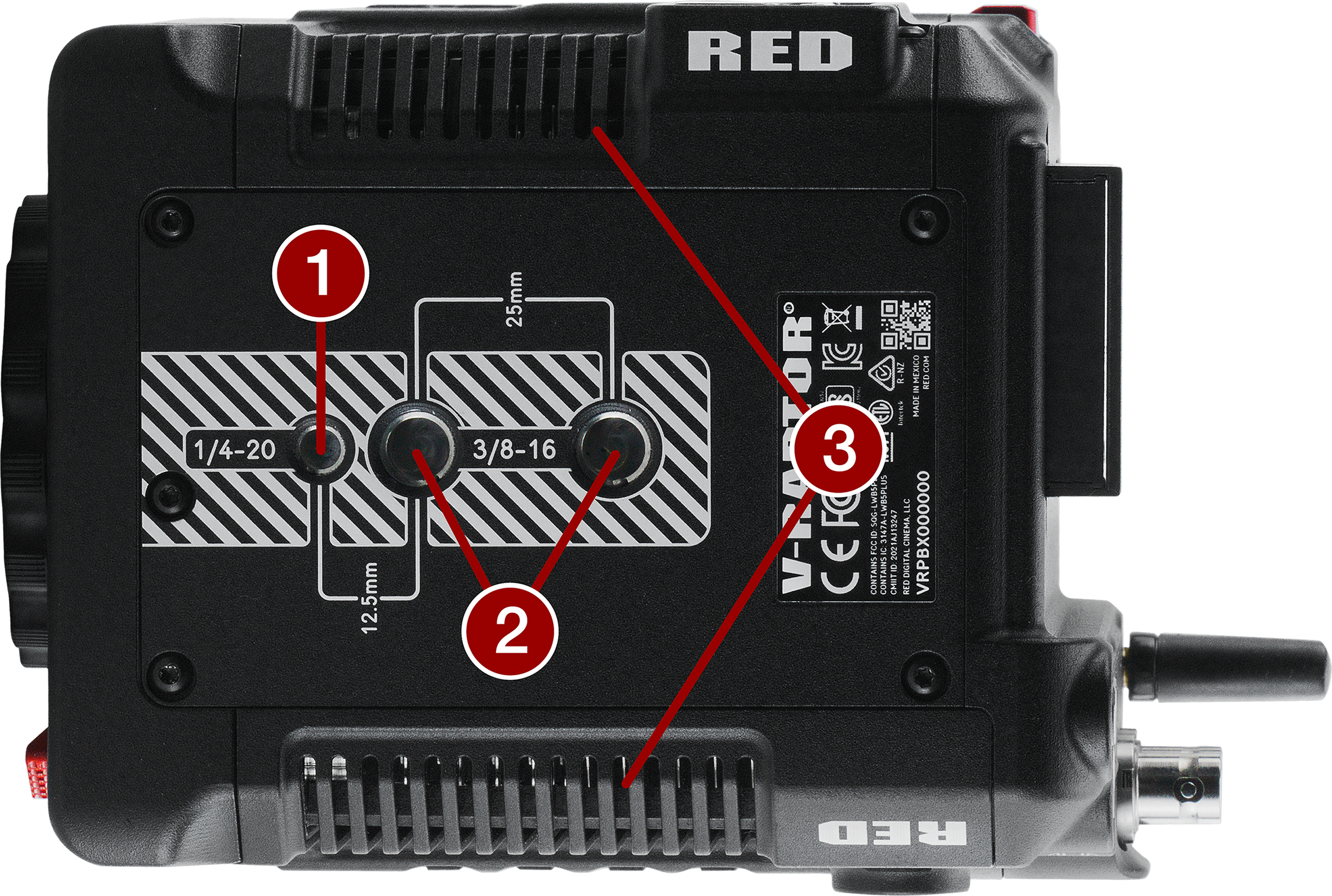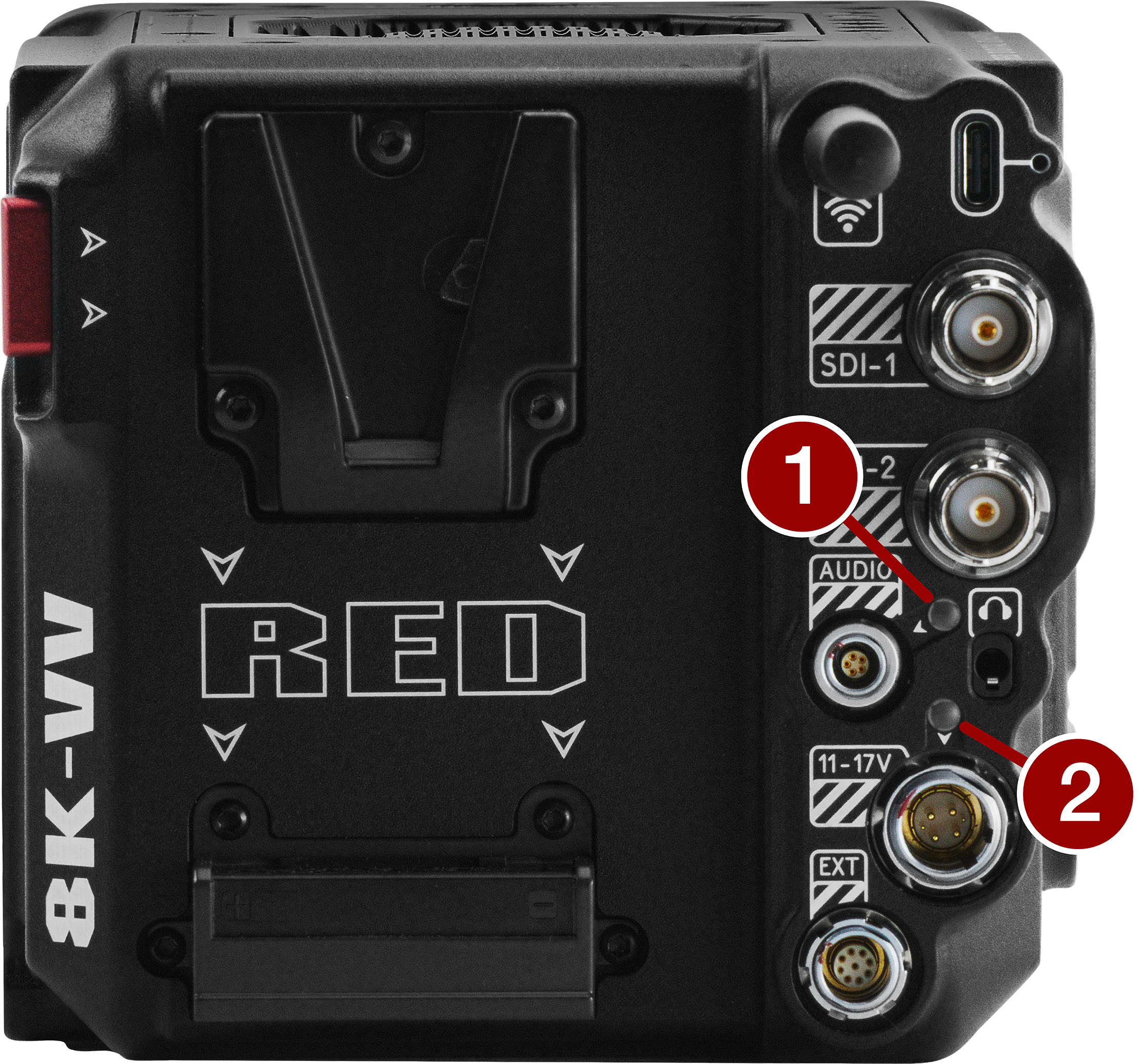 14.4 V Micro V-Lock battery mount (refer to REDVOLT Batteries) |
