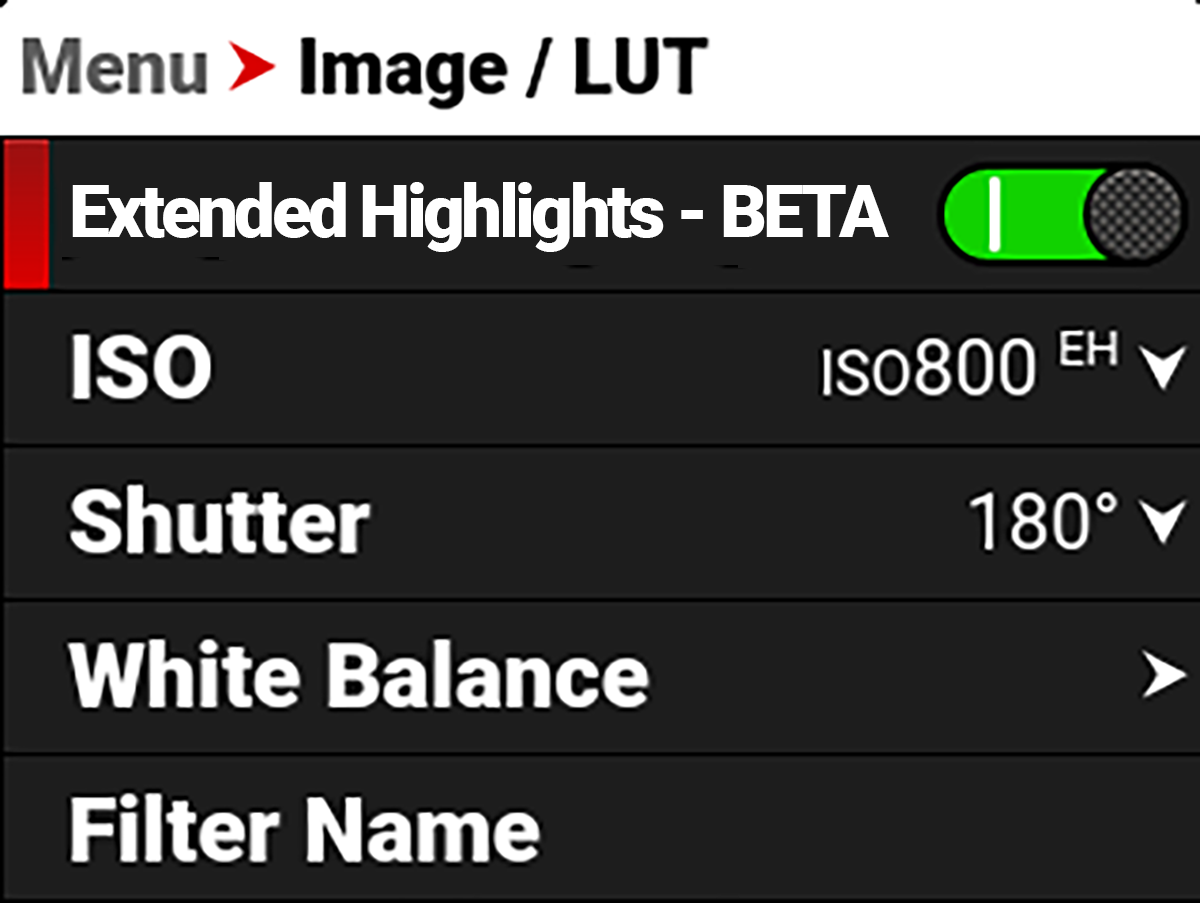 Extended Highlights is a beta feature of RED Global Vision that allows for capturing additional highlight detail which is especially useful in uncontrollable environments. When enabled, all monitors and proxy recordings will capture a preview of the new extended dynamic range so that the workflow participants can make exposure decisions based on the processed image.
