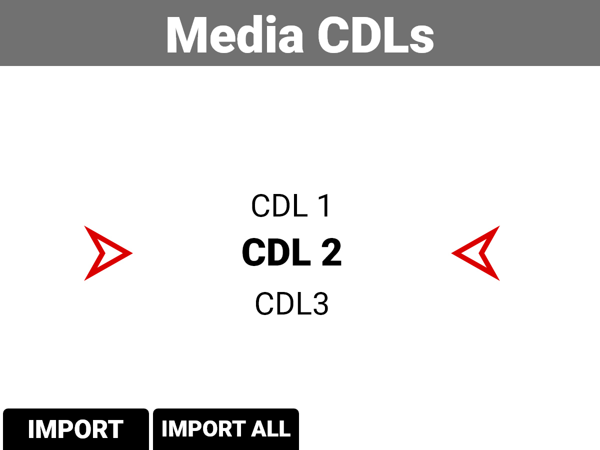 From Media CDLs you can import the selected CDL from the media to the camera or import all of the CDLs from the media to the camera.