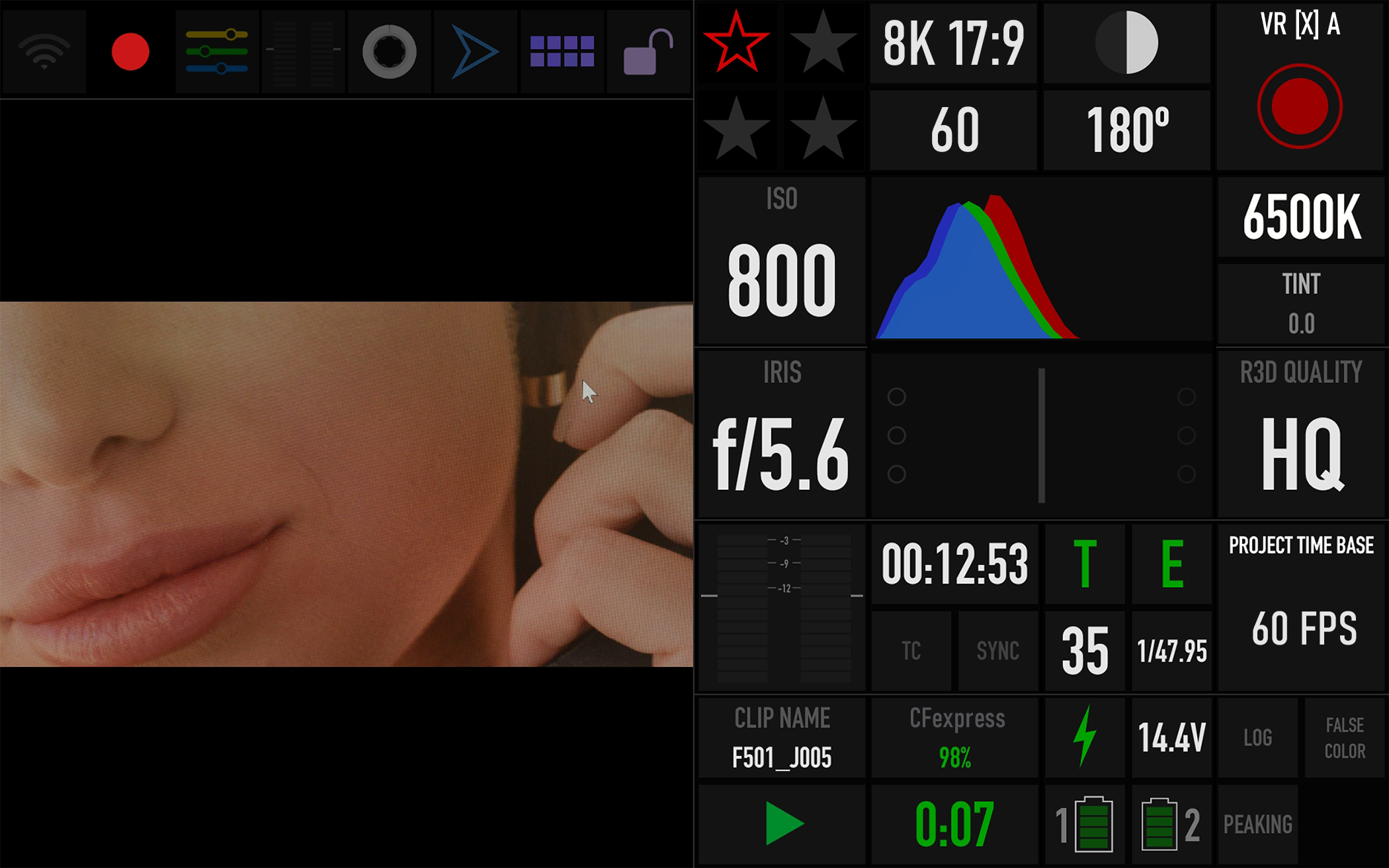 The RED Control app allows you to control all of the camera features while viewing the image.