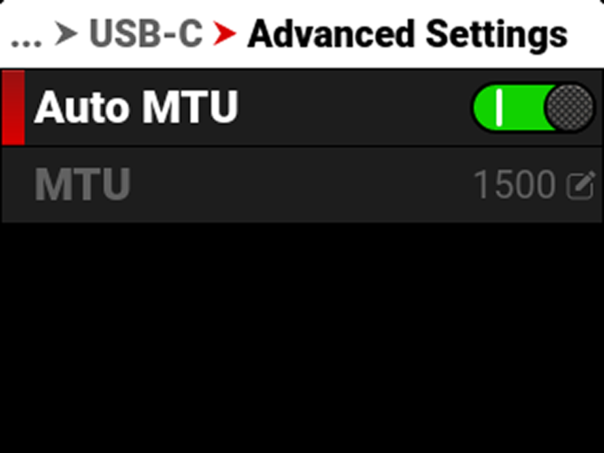 The USB-C Advanced Settings menu allows you to change the MTU size.