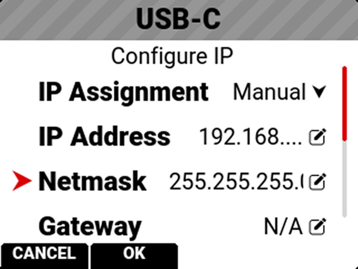 When Manual IP Assignment is enabled, you can select Netmask and manually enter a Netmask address.