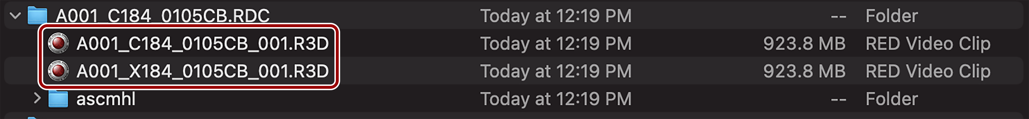 When you record using Phantom Track mode, the camera records two instances of the same clip within the .RDC folder. The camera labels the first instance with the Camera Position letter configured in the Slate menu (A to W, default C), while it labels the second instance with Camera Position X.
