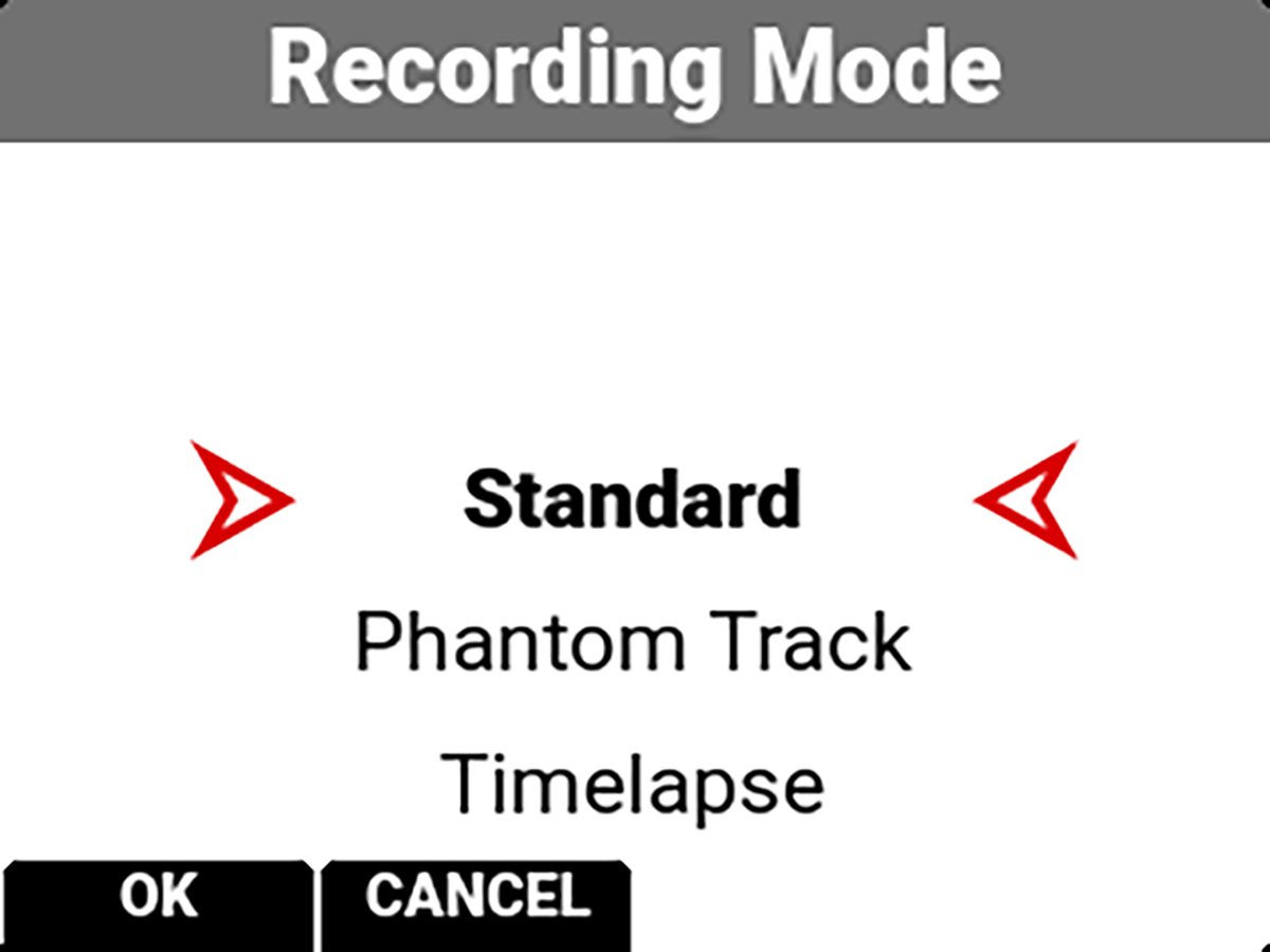 When you select Timelapse, the Timelapse option is enabled on the menu.