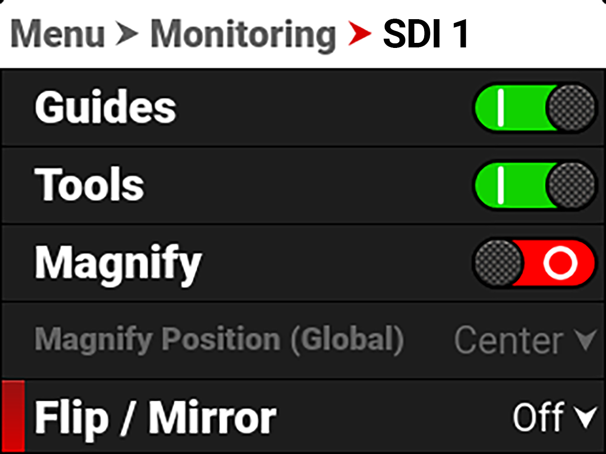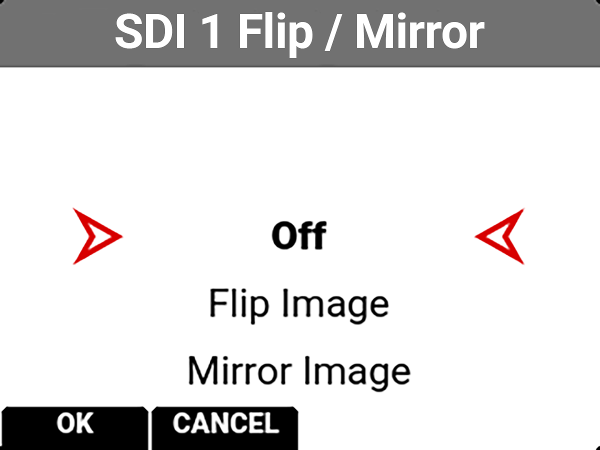 Use Flip / Mirror to select the flip and mirror orientation you want to use for the SDI display.