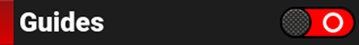 Use Guides to enable or disable the viewing of guides. You can enable and disable guides by pressing SEL to toggle Guides to the right (green / enabled) and to the left (red / disabled).