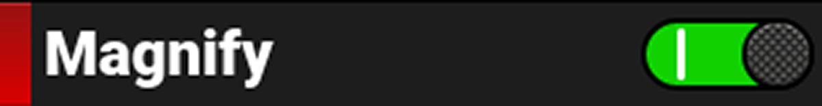 Use Magnify to enable or disable the magnification of the output image. You can enable and disable magnification by pressing SEL to toggle Magnify to the right (green / enabled) and to the left (red / disabled).