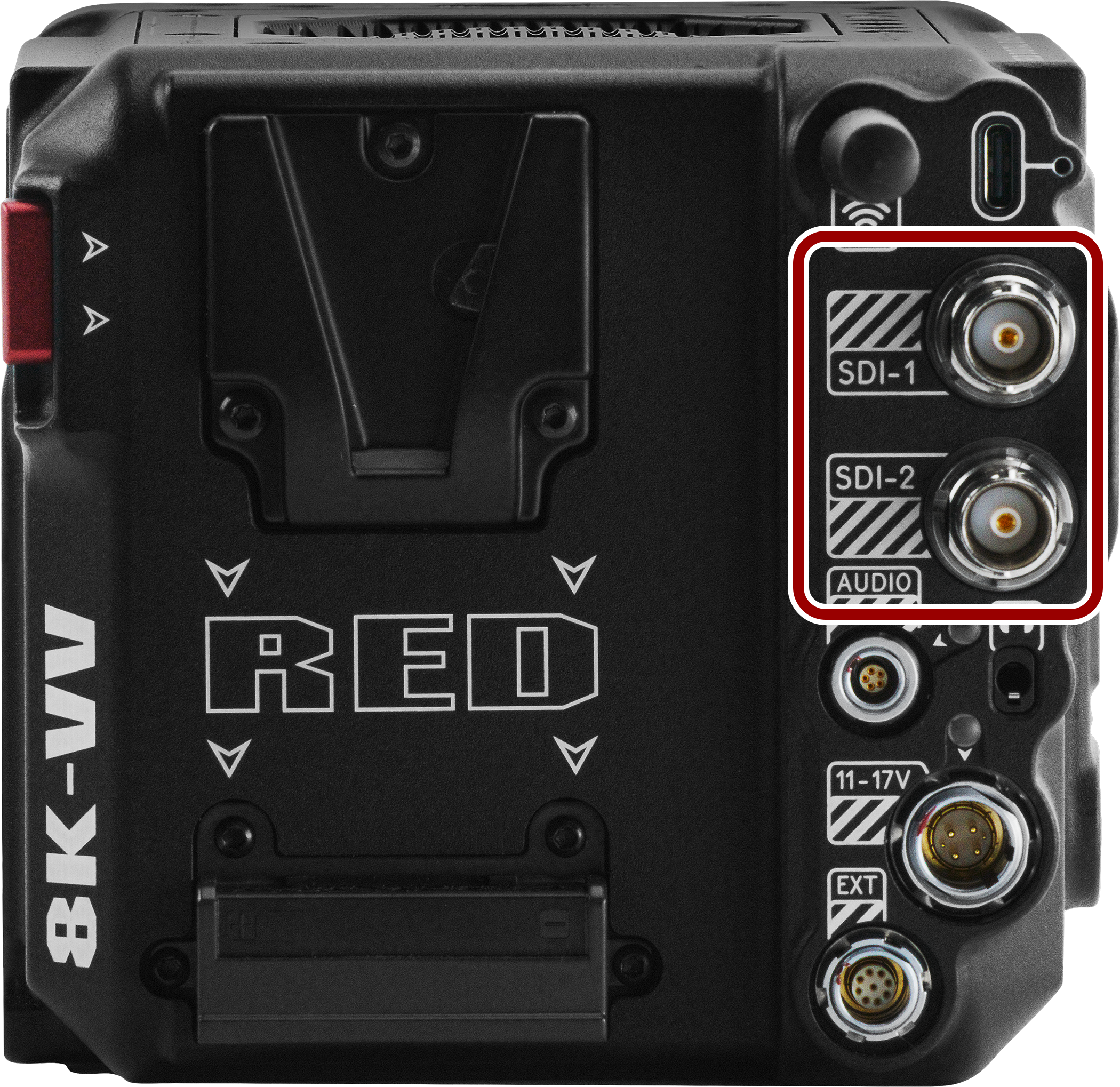 WARNING: Under certain circumstances, it is possible for an SDI connector to incur damage when connected to an accessory and powered without using shielded cables. RED recommends only using high quality, shielded BNC cables that are rated for 12G-SDI signals and only using shielded power cables for powering SDI accessories.