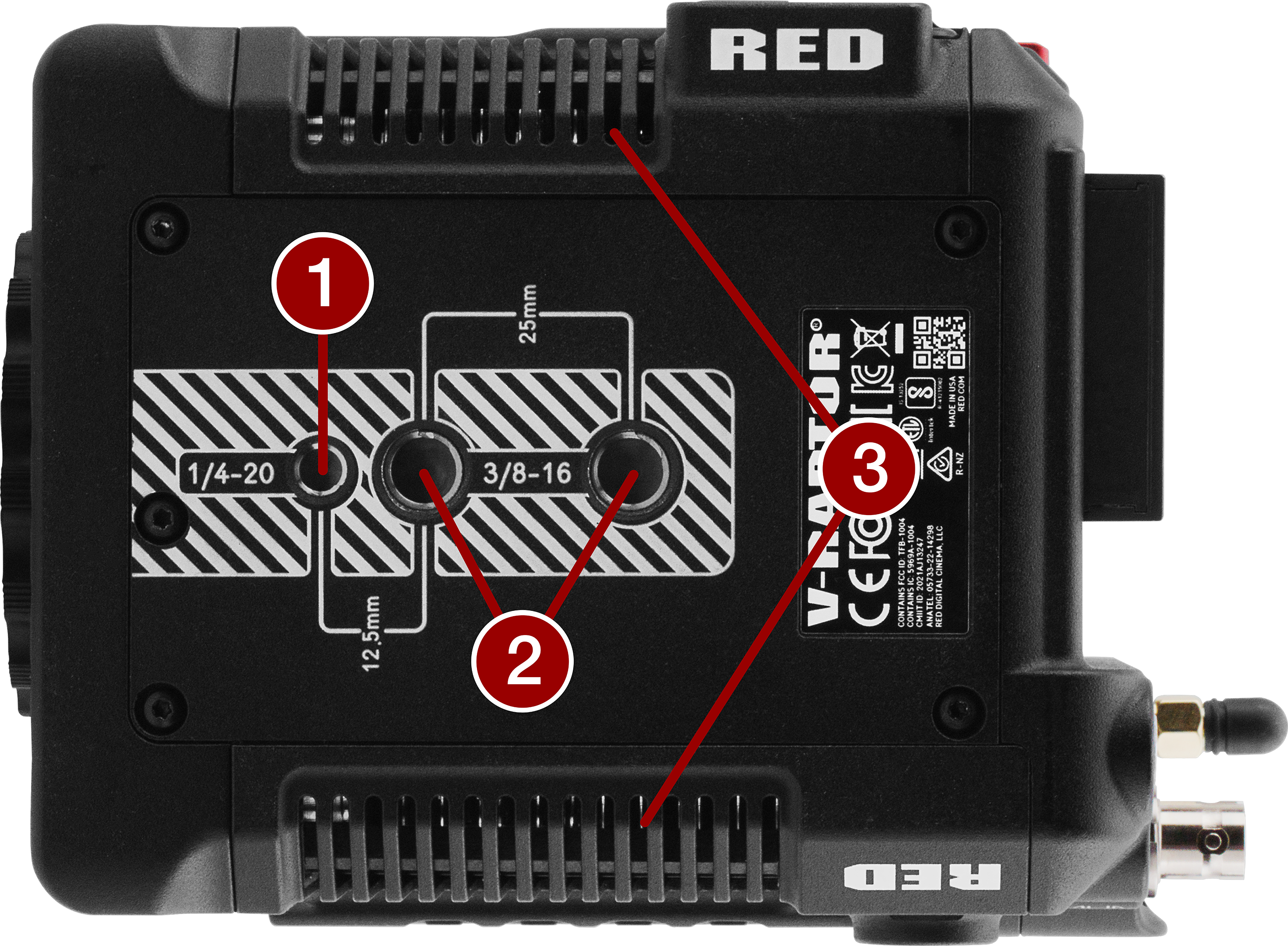 14.4 V Micro V-Lock battery mount (refer to REDVOLT Batteries) |