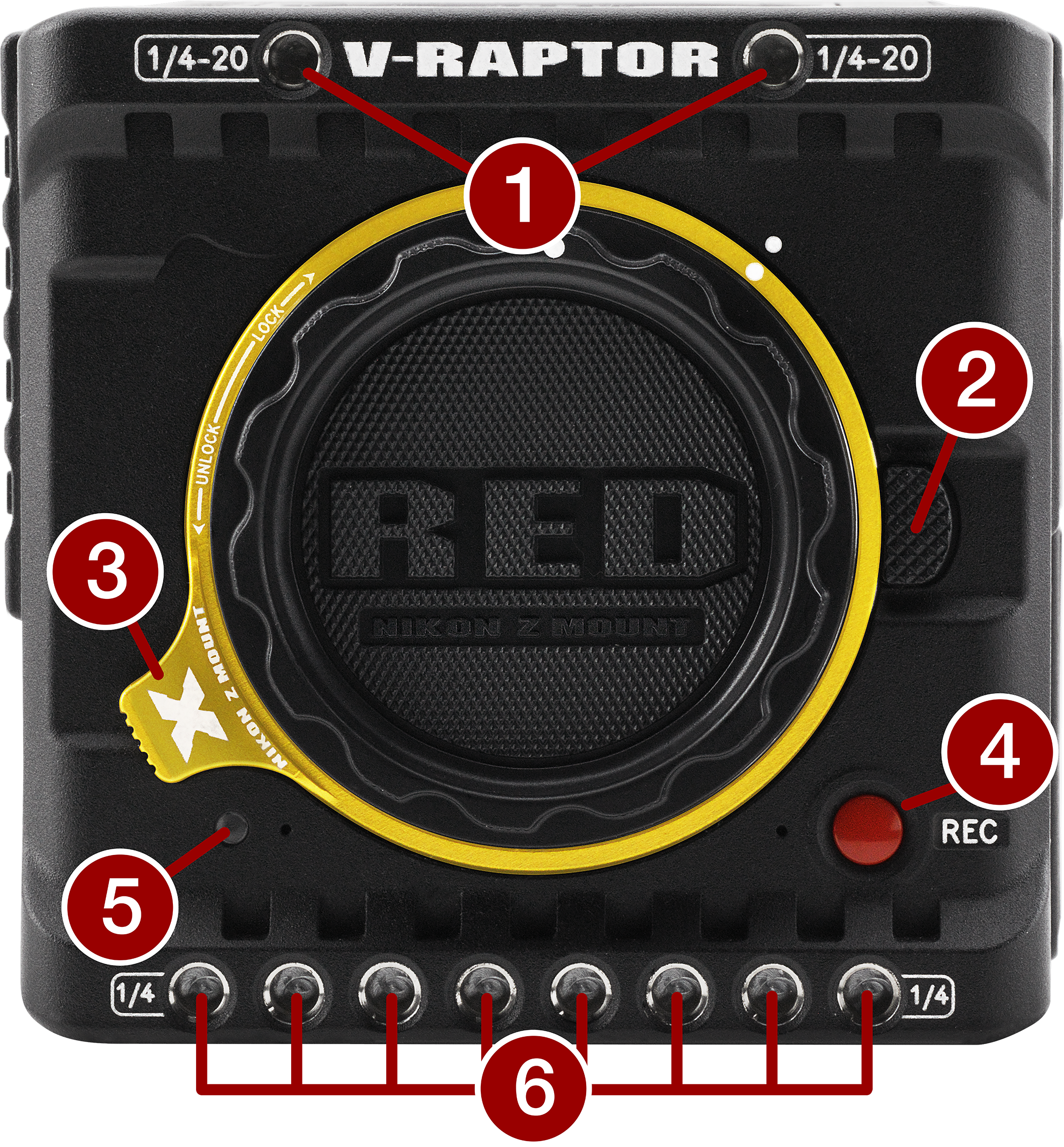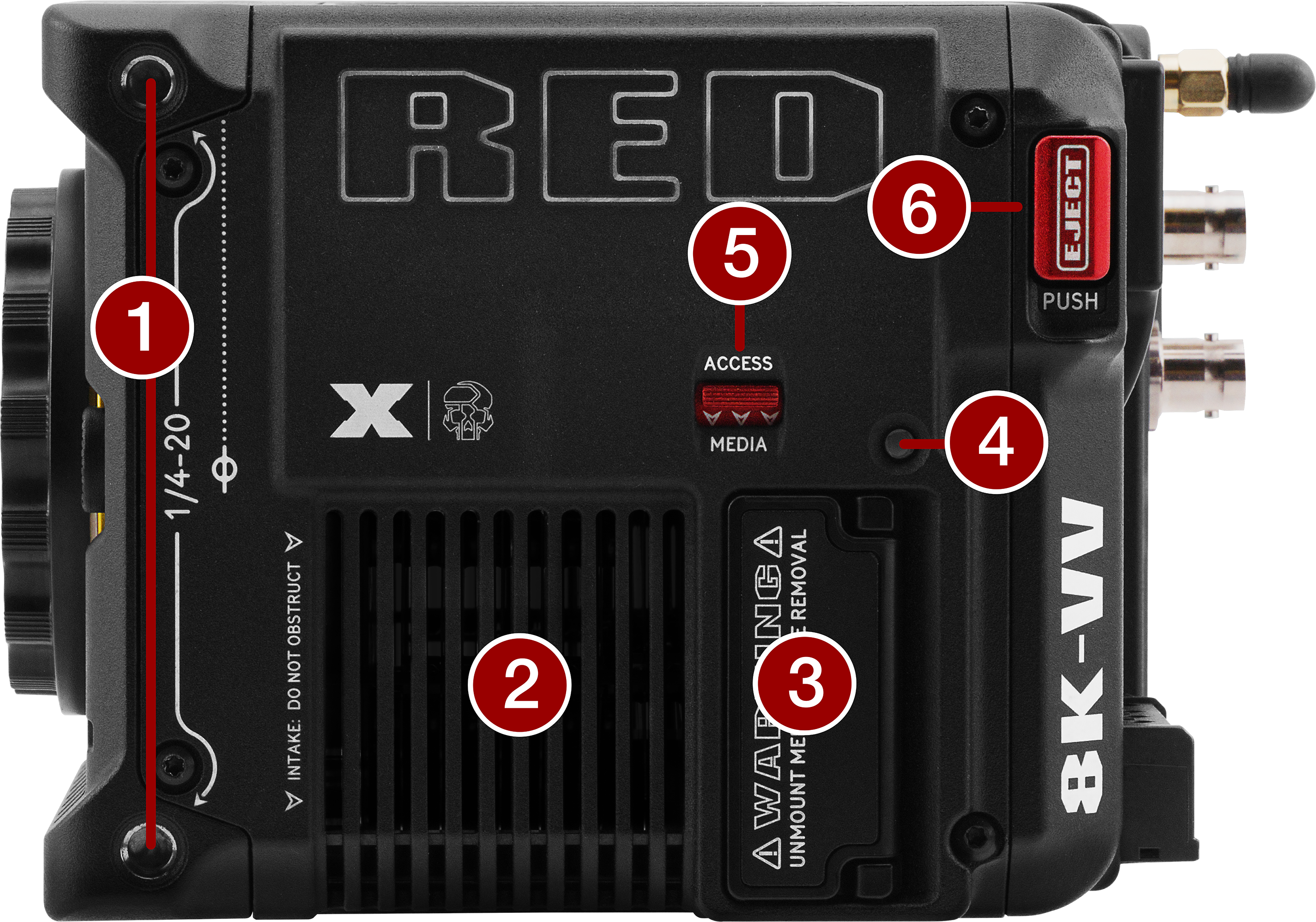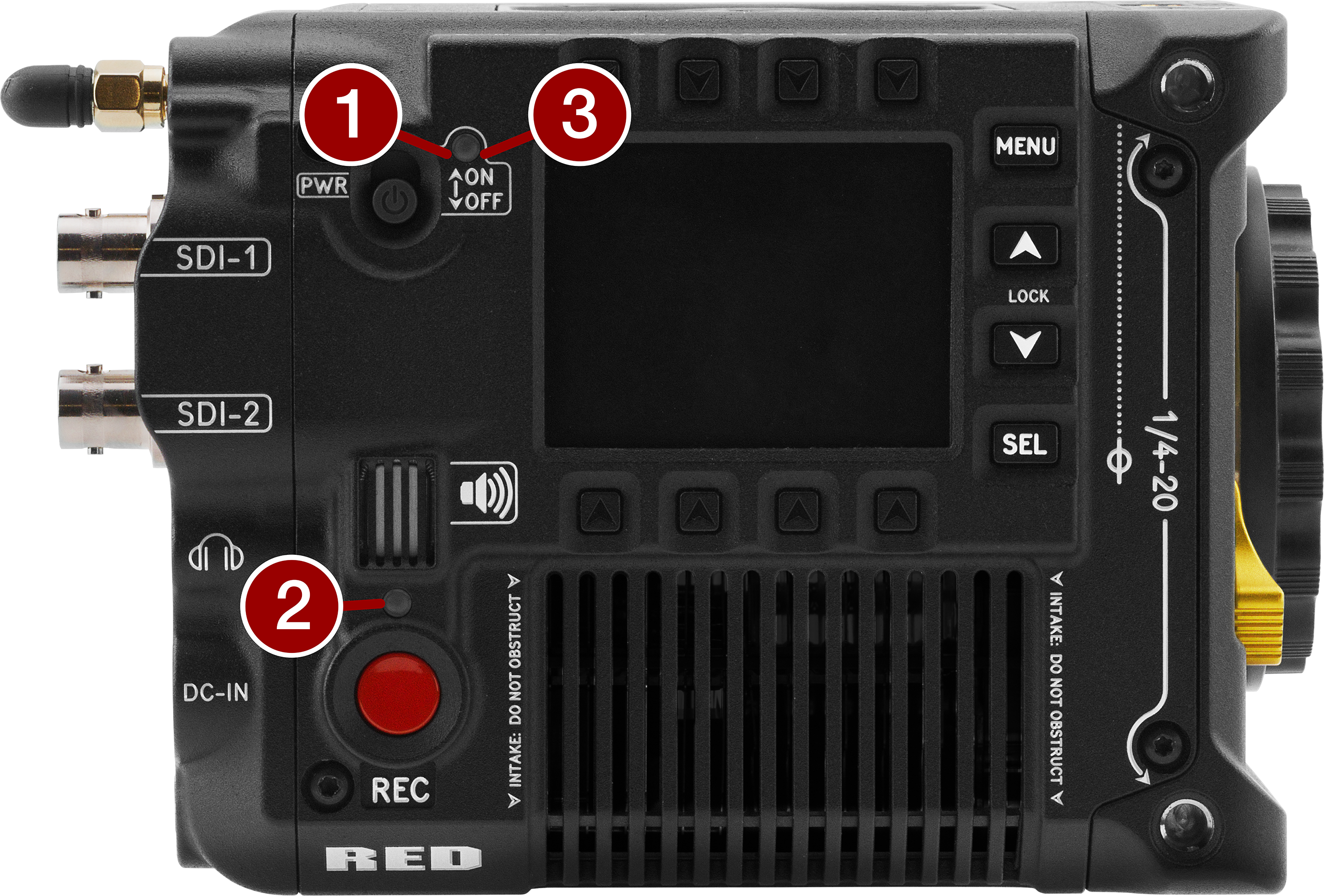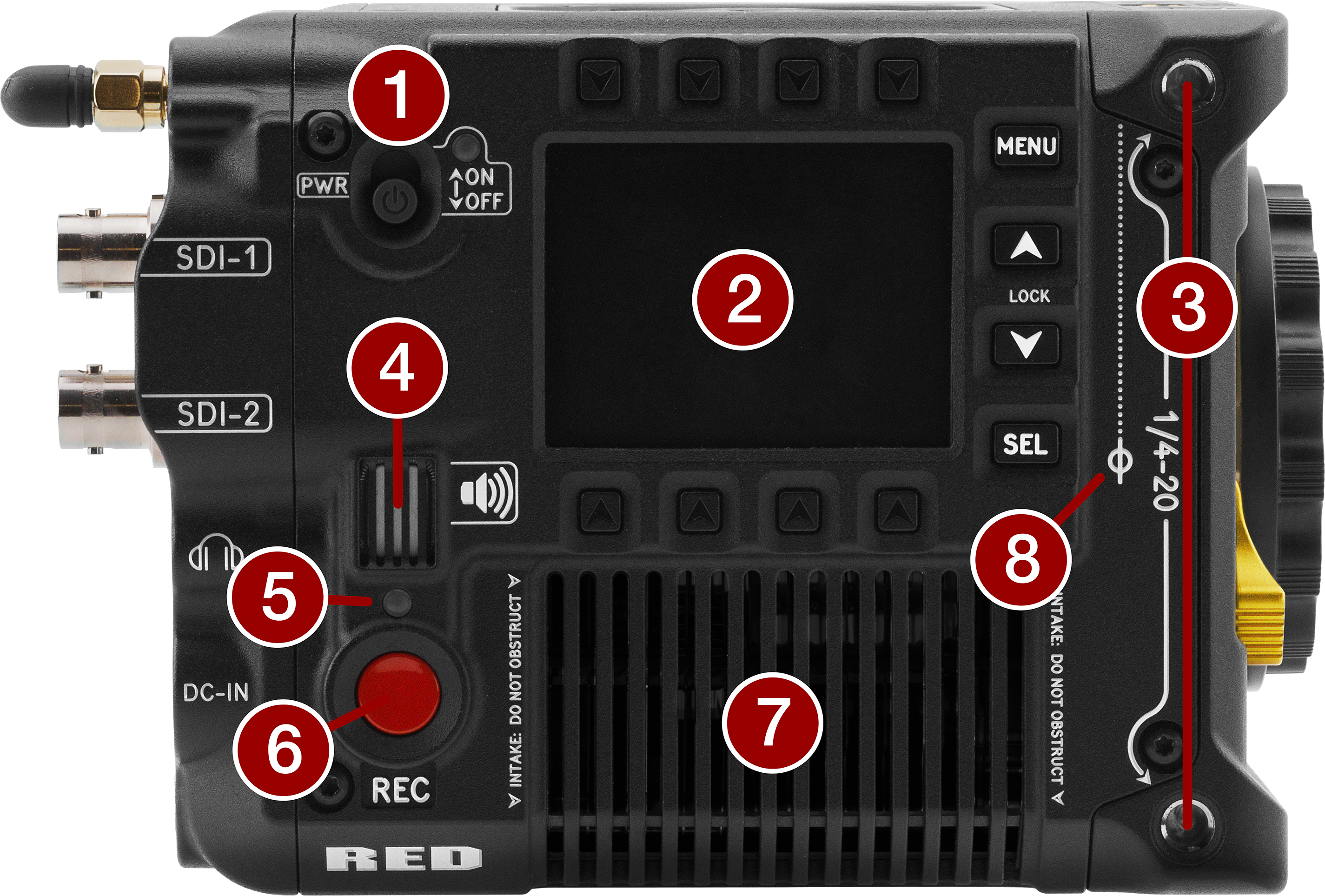Connection port for accessories (refer to Outrigger Handle, and DSMC3™ RED® Touch 7.0" LCD) |