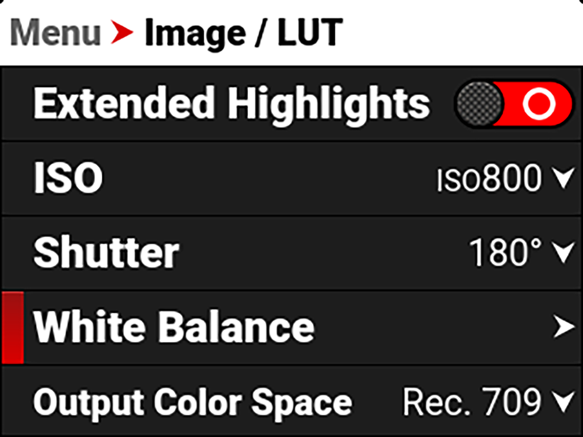 When shooting in R3D format, the camera stores white balance as metadata, which you can adjust non-destructively in post-production after filming.