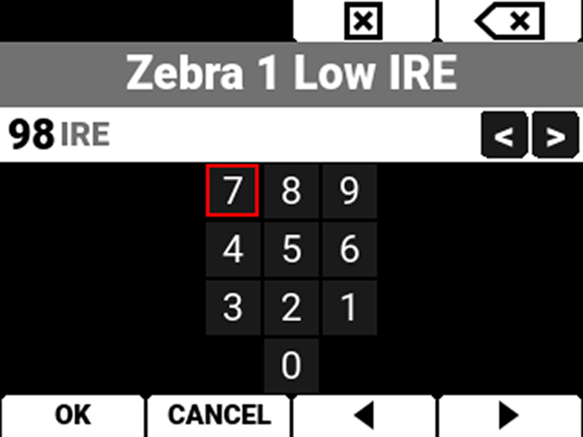 Provides a keypad that allows you to set the low threshold for the Zebra stripe. The default setting is 98 IRE.
