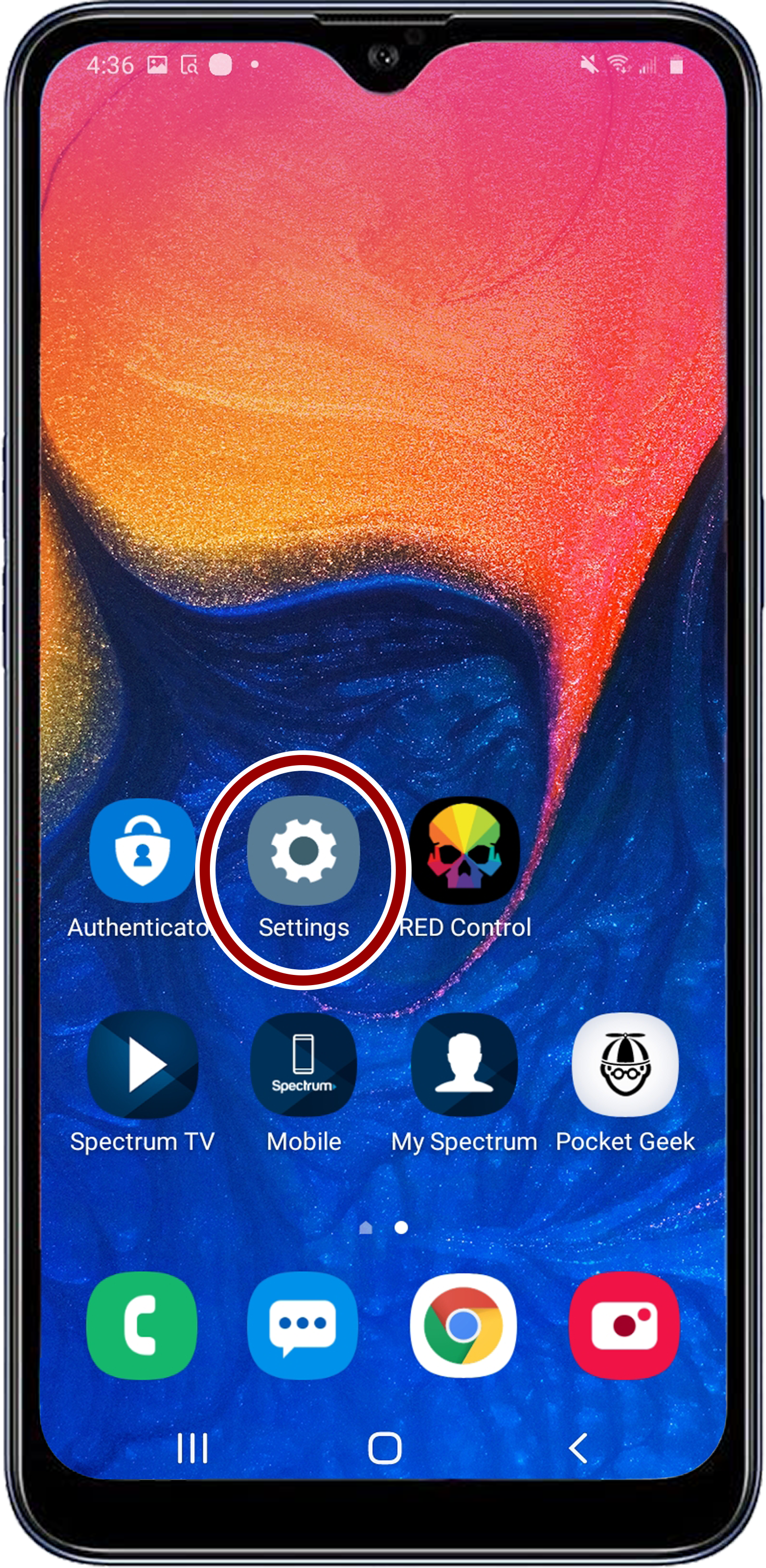- Open the Android device settings by tapping the Settings icon (gear).