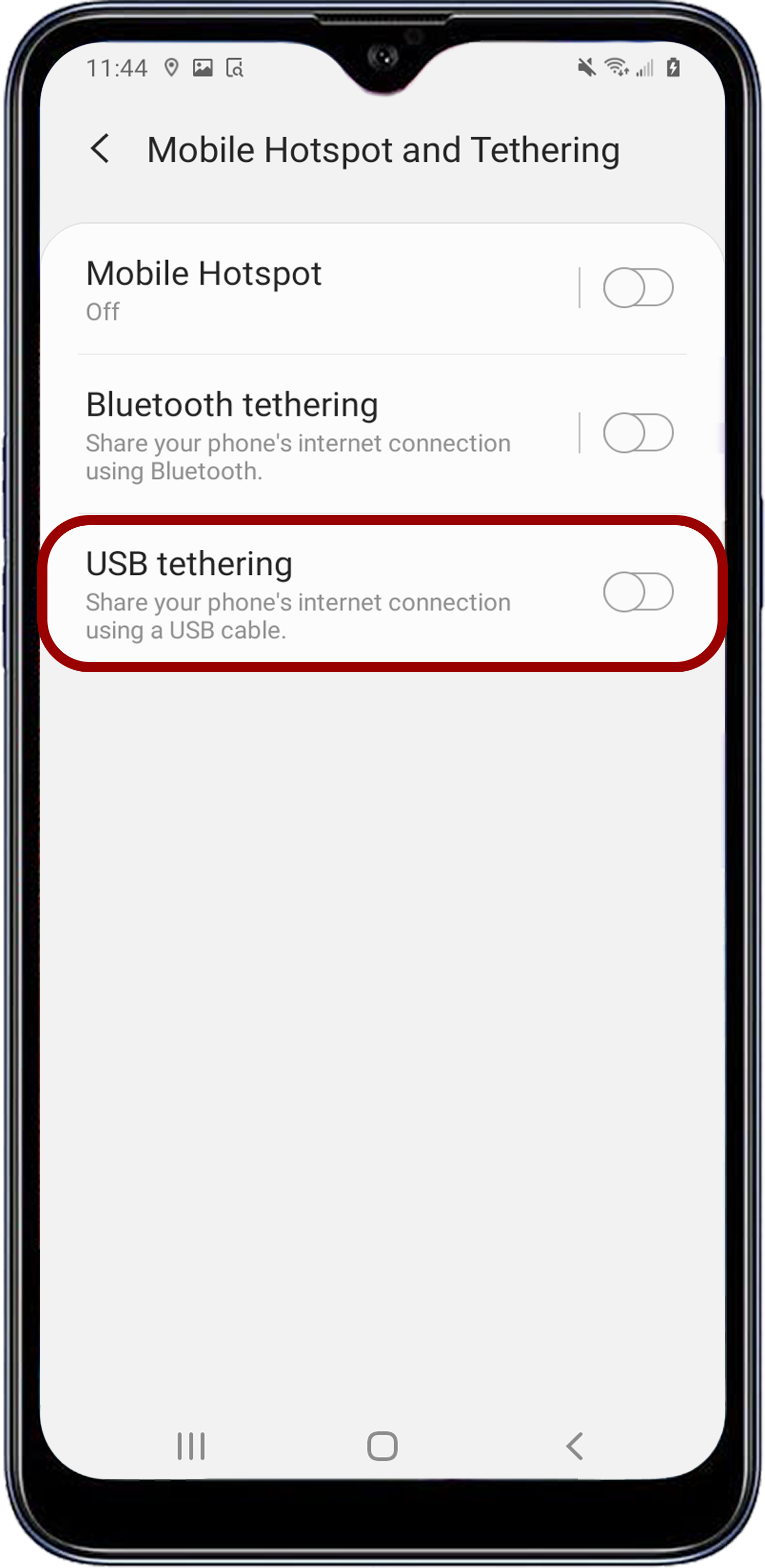 - Enable USB Tethering.