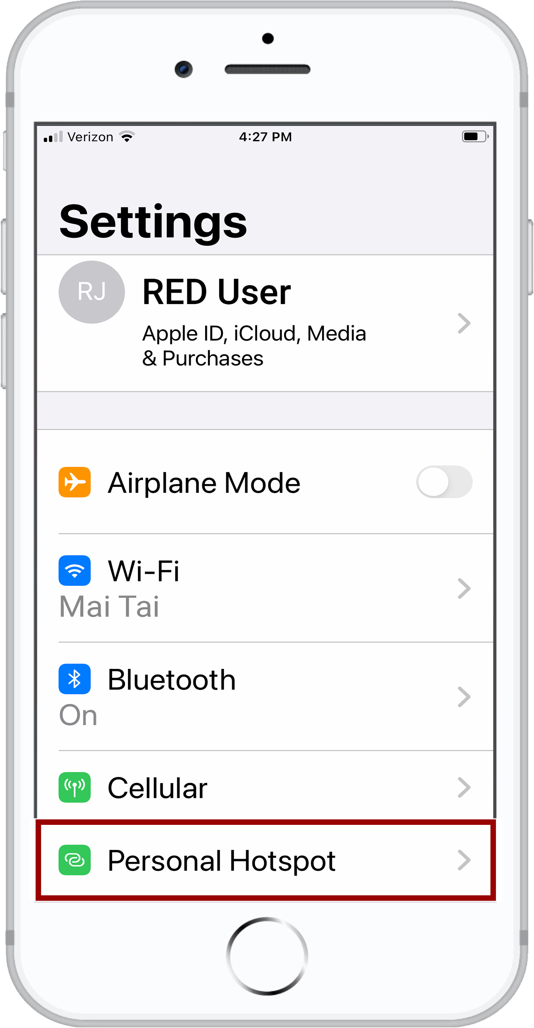 - Select Personal Hotspot.