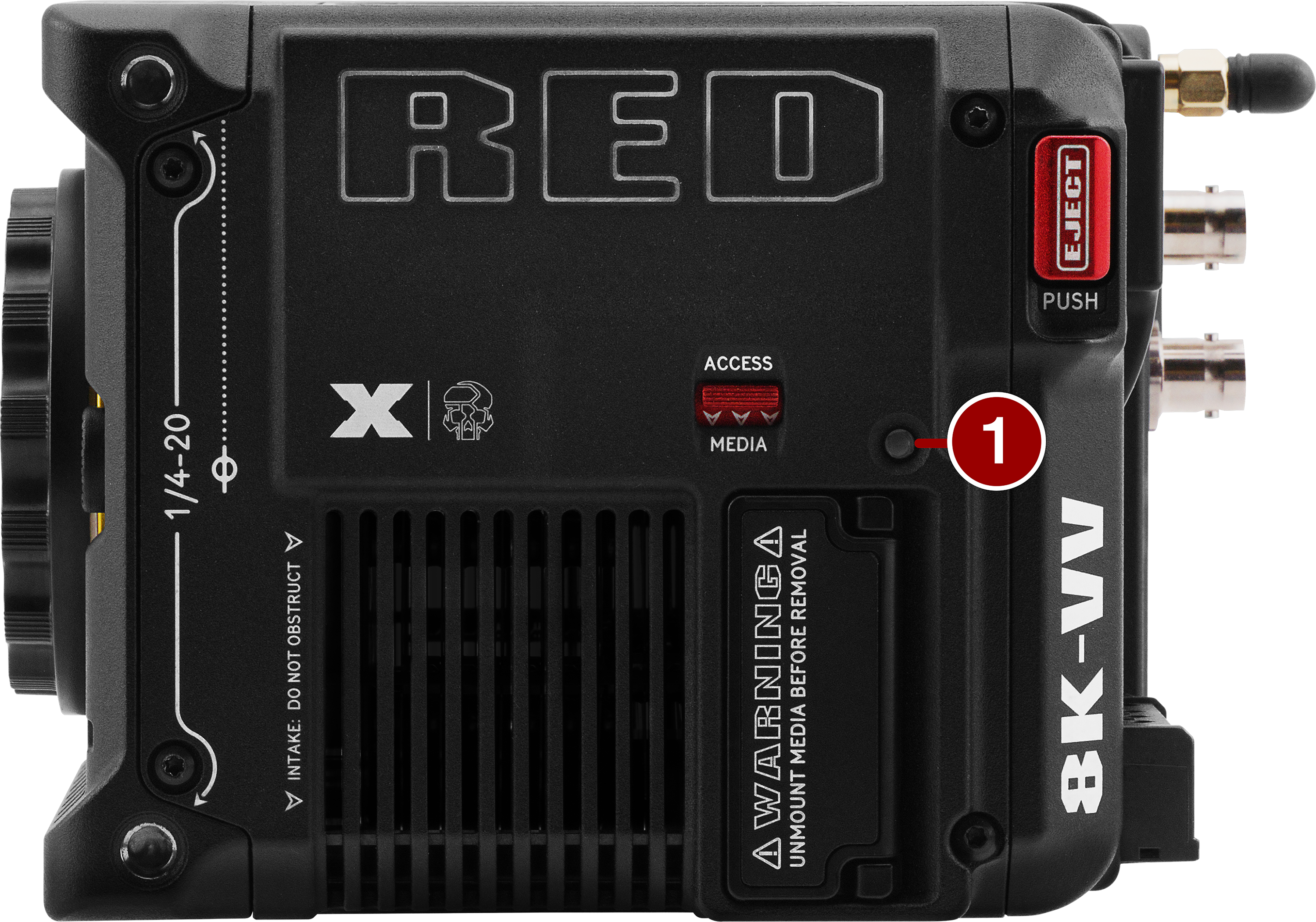 Connection port for accessories (refer to Outrigger Handle, and DSMC3™ RED® Touch 7.0" LCD) |