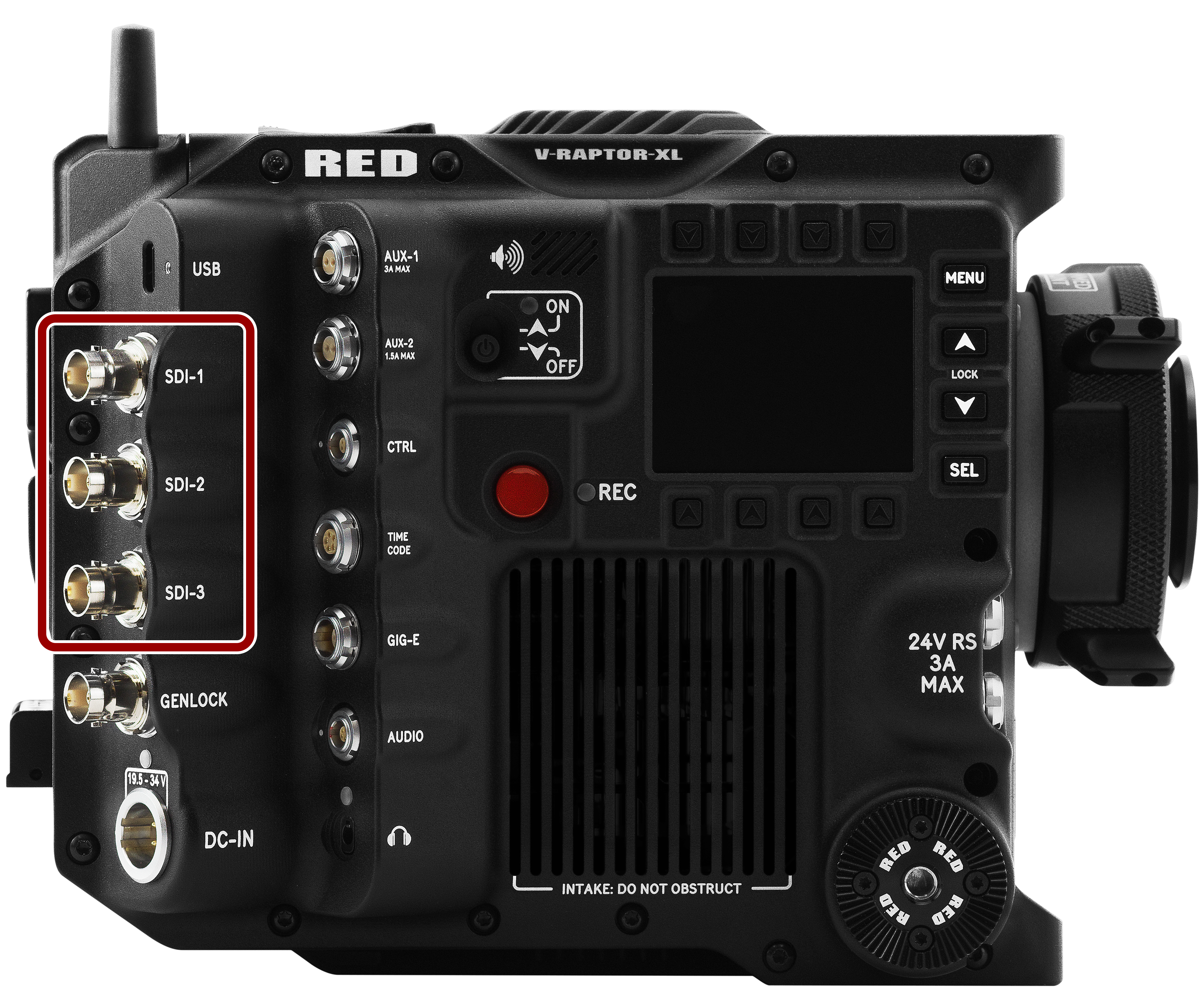 WARNING: Under certain circumstances, it is possible for an SDI connector to incur damage when connected to an accessory and powered without using shielded cables. RED recommends only using high quality, shielded BNC cables that are rated for 12G-SDI signals and only using shielded power cables for powering SDI accessories.