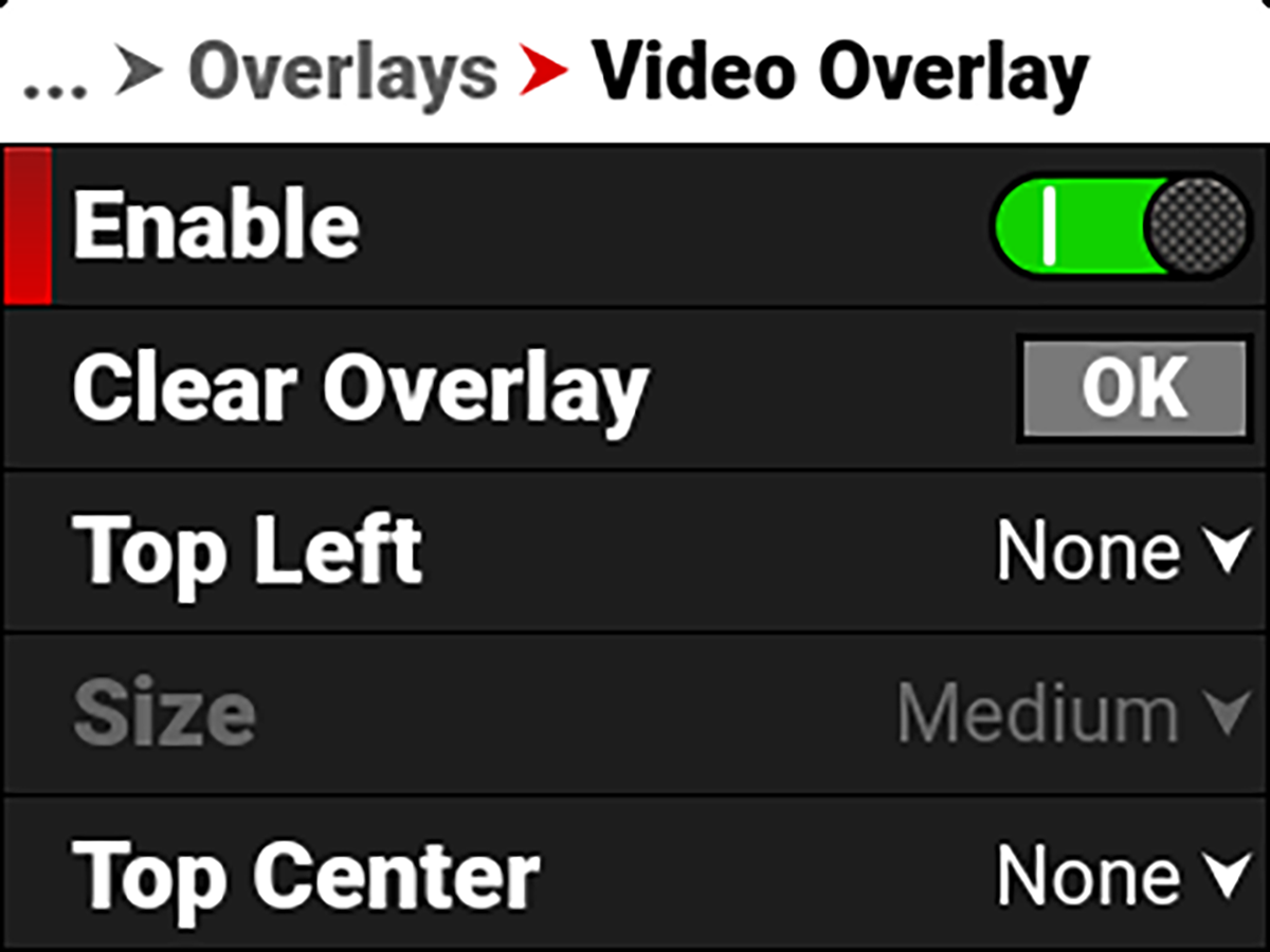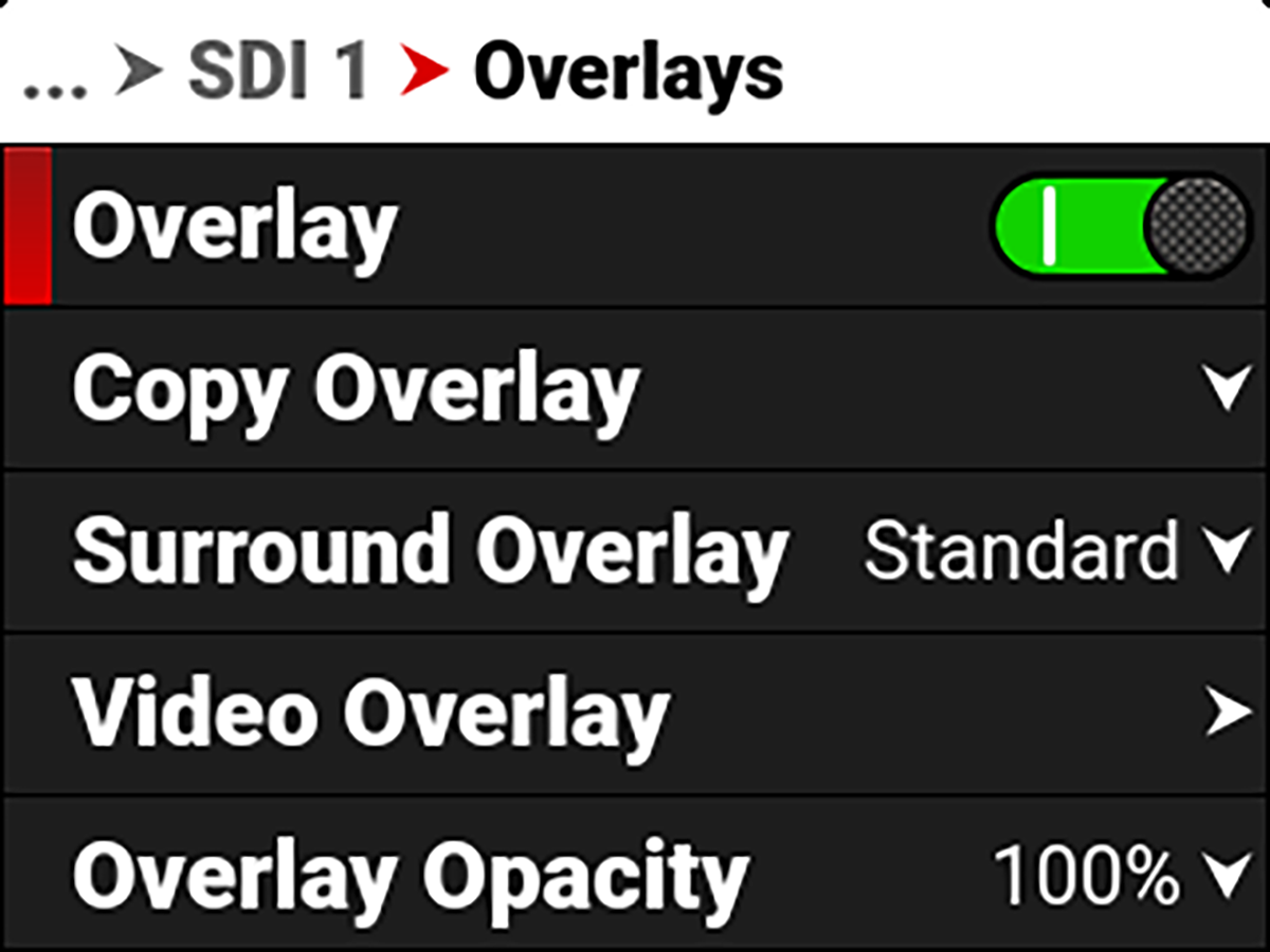 Use Overlays to manage the SDI overlay settings. These settings include: