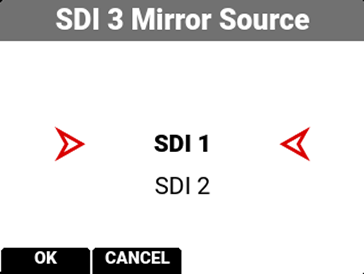 You can quickly configure SDI 2 to match SDI 1 by selecting Mirror SDI 1 on the SDI 2 menu: