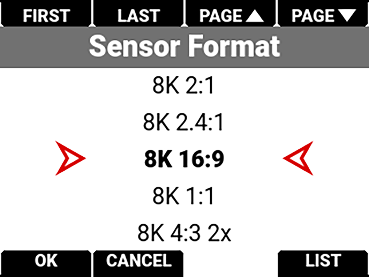 - Set the camera format to 16:9 (ex. 8K 16:9, 4K 16:9, 2K 16:9). Go to Menu -> Project Settings -> Sensor Format.