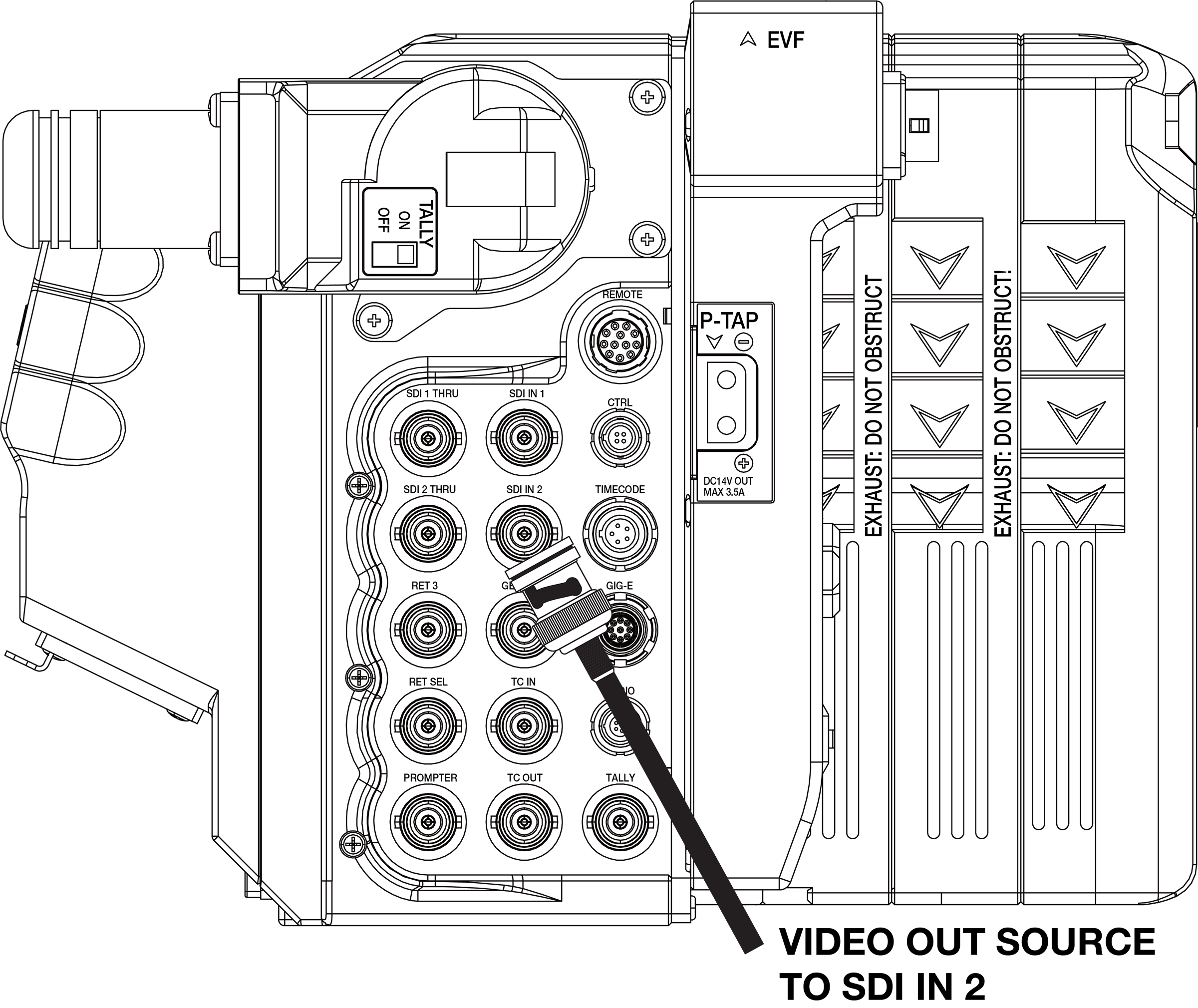 - Connect the desired video output for the Viewfinder into SDI IN 2 on the Cine-Broadcast Module.