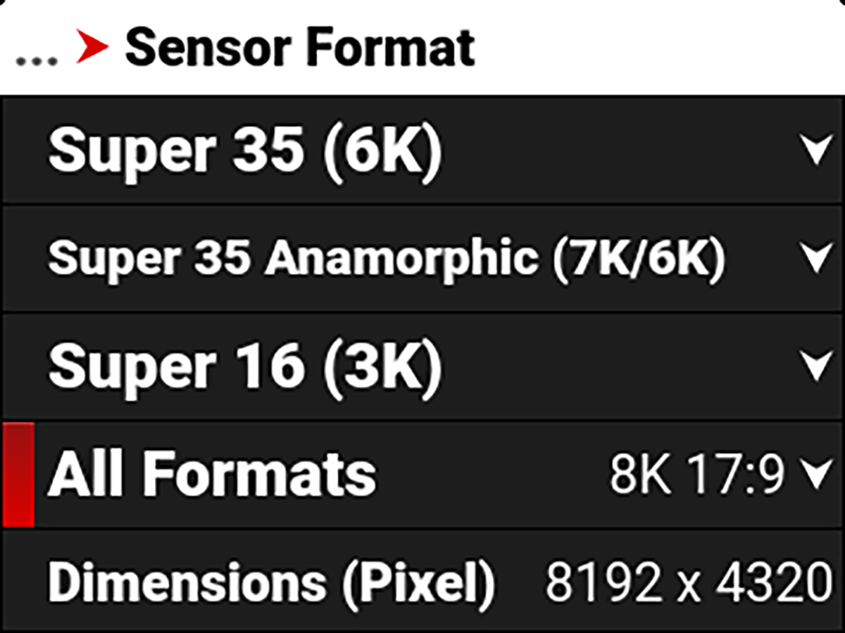 Use the All Formats setting to select from all of the possible sensor formats to designate how much of the sensor the camera should use to capture images.