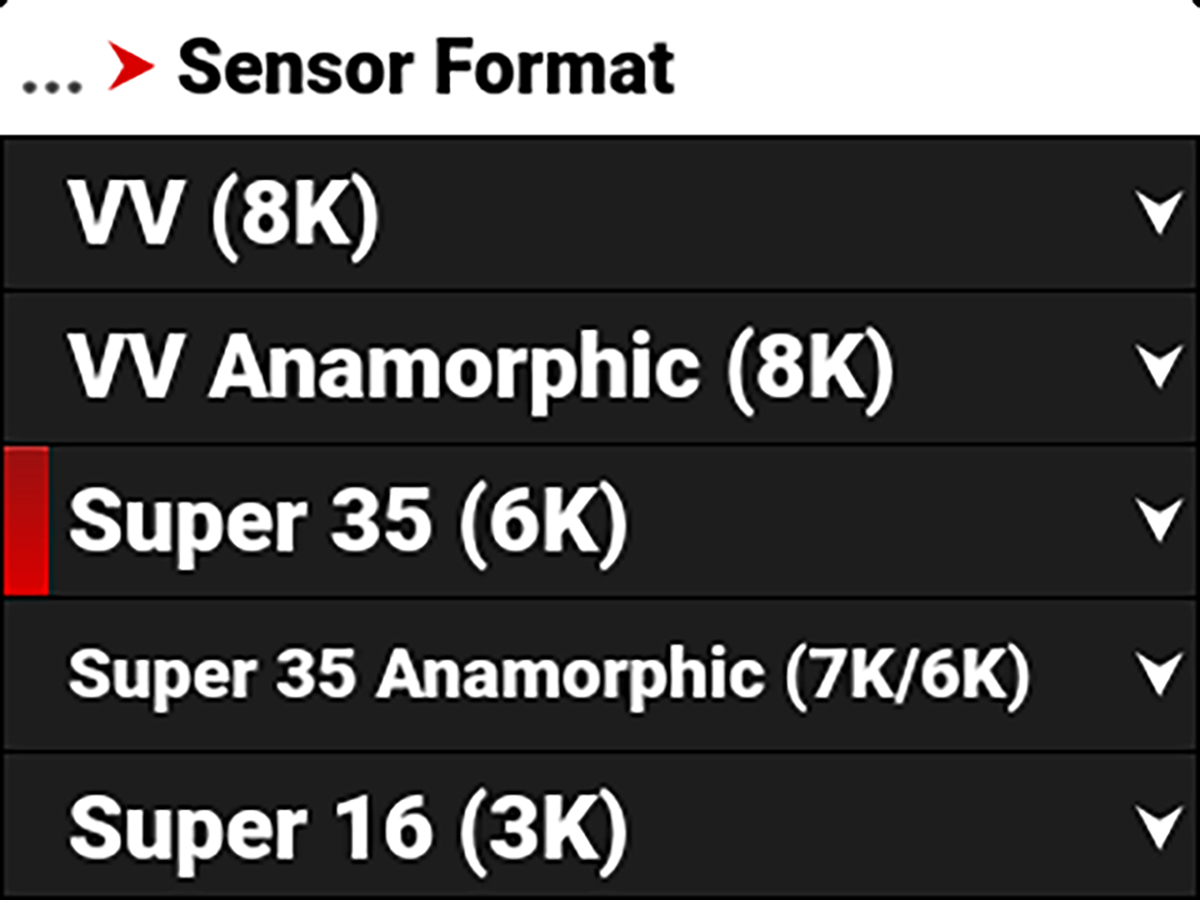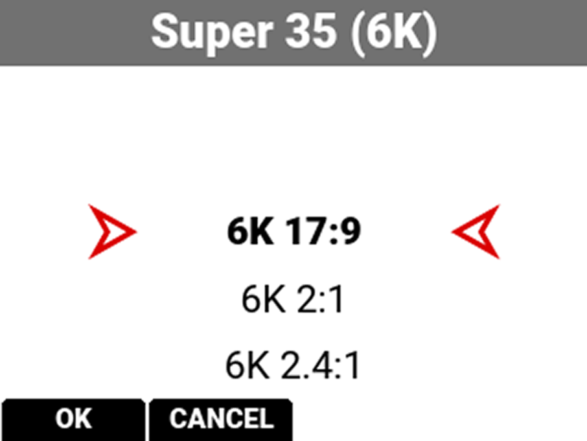 The default sensor format is 6K 17:9.