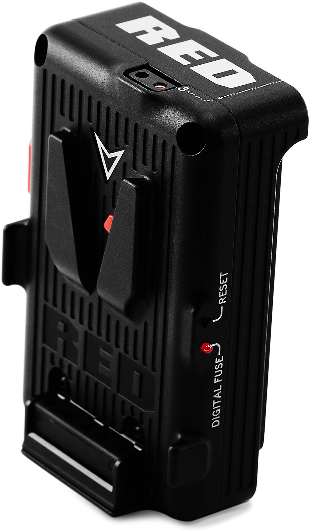 The V-Lock and Gold Mount battery adapters include a P-tap/D-tap and an E-Fuse safety system and pogo connection system to interface with the Top Plate. These adapters allow the camera to accept full-size V-Lock and Gold Mount batteries.